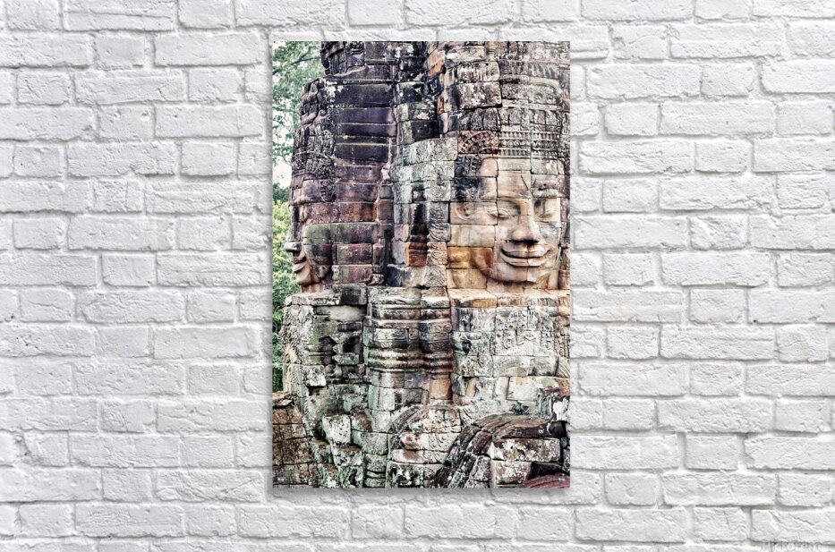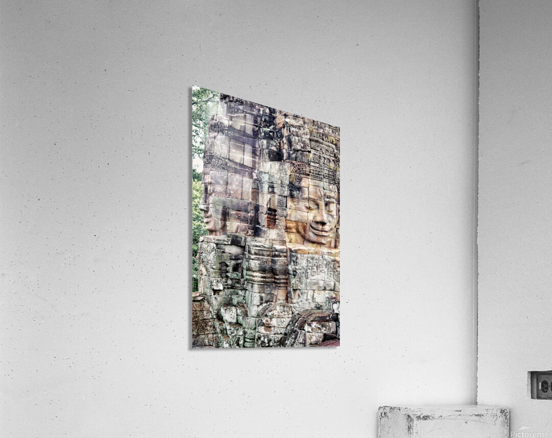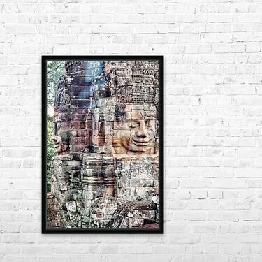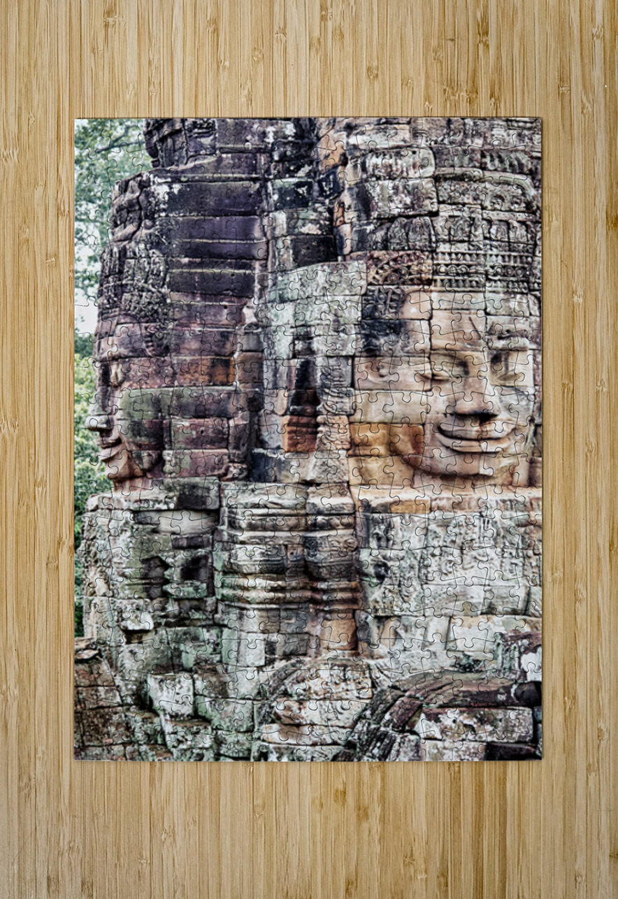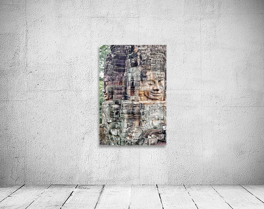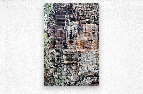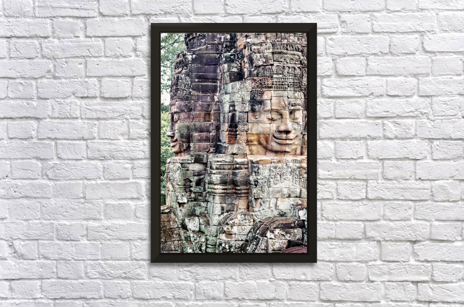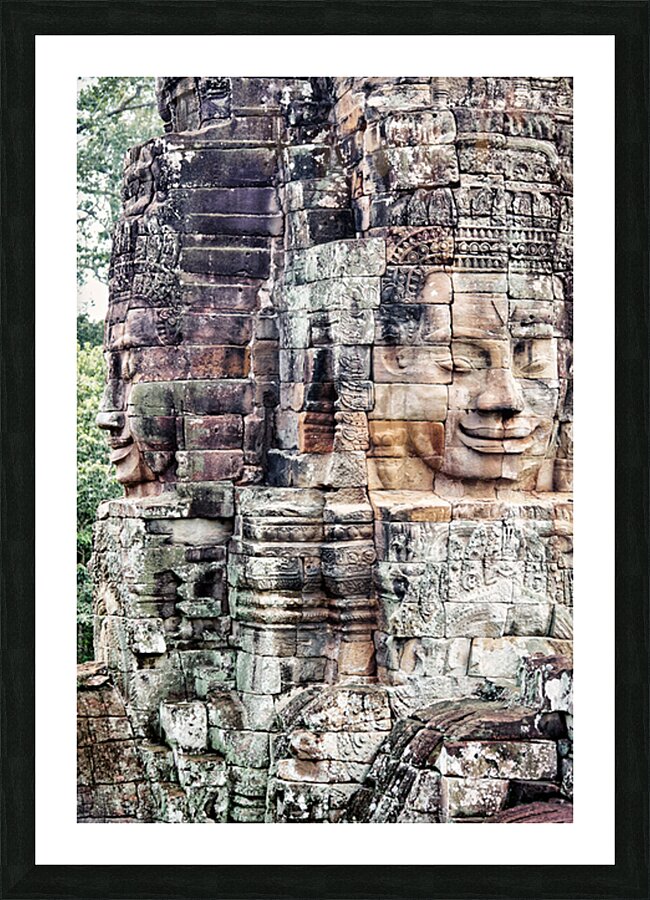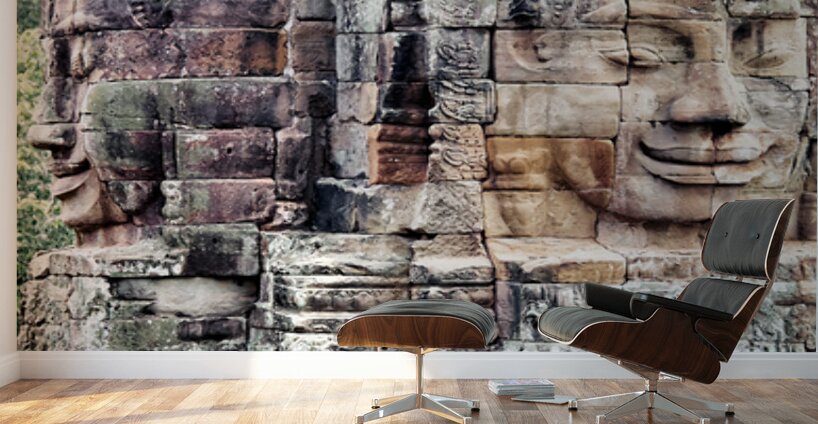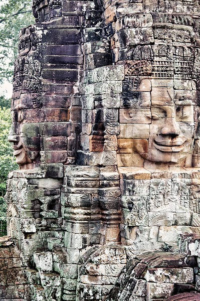 Smiling stone faces of Avalokiteshvara or King Jayavarman VII at Bayon Temple Angkor Thom Cambodia a Mahayana Buddhist temple.