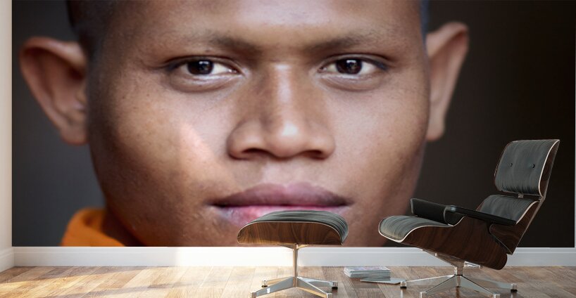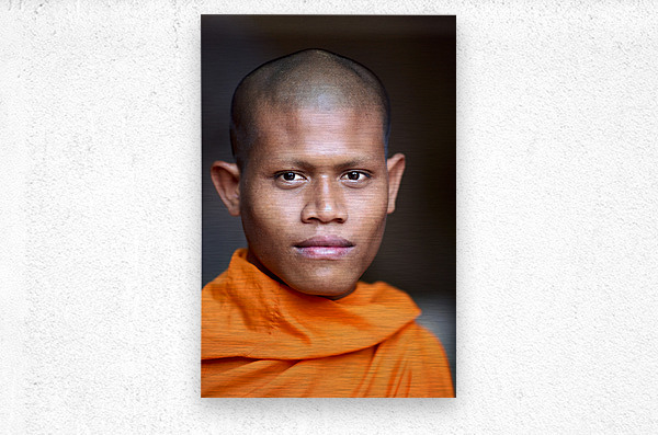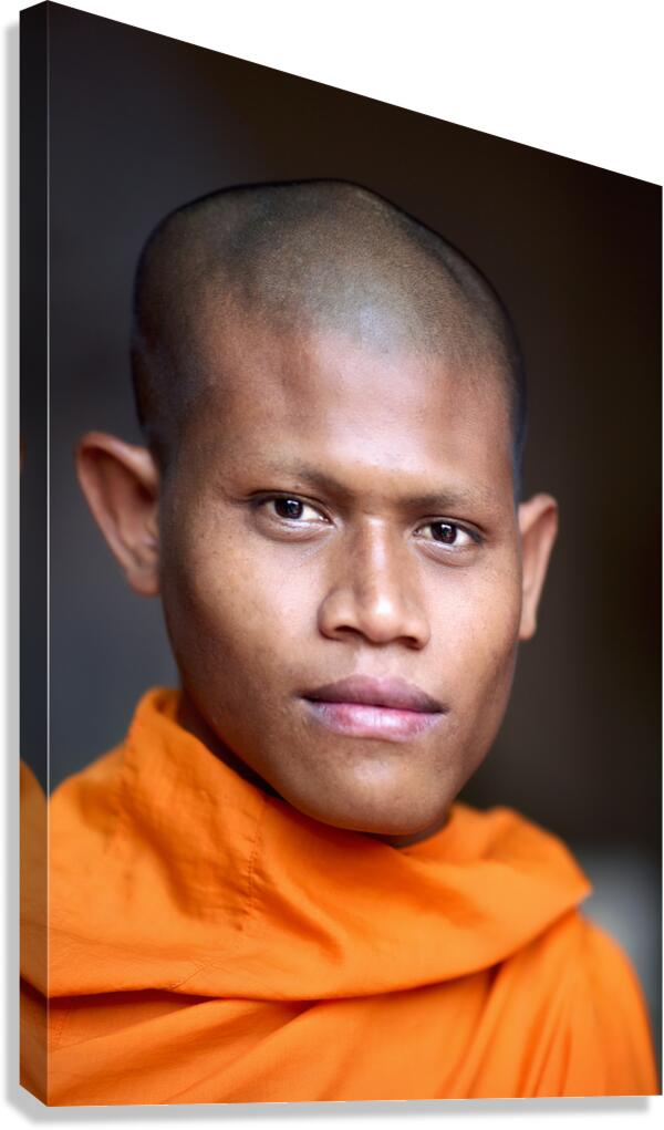 ABOUT THIS ARTWORK: YOUNG BUDDHIST MONK IN ORANGE ROBE CLOSE UP PORTRAIT.