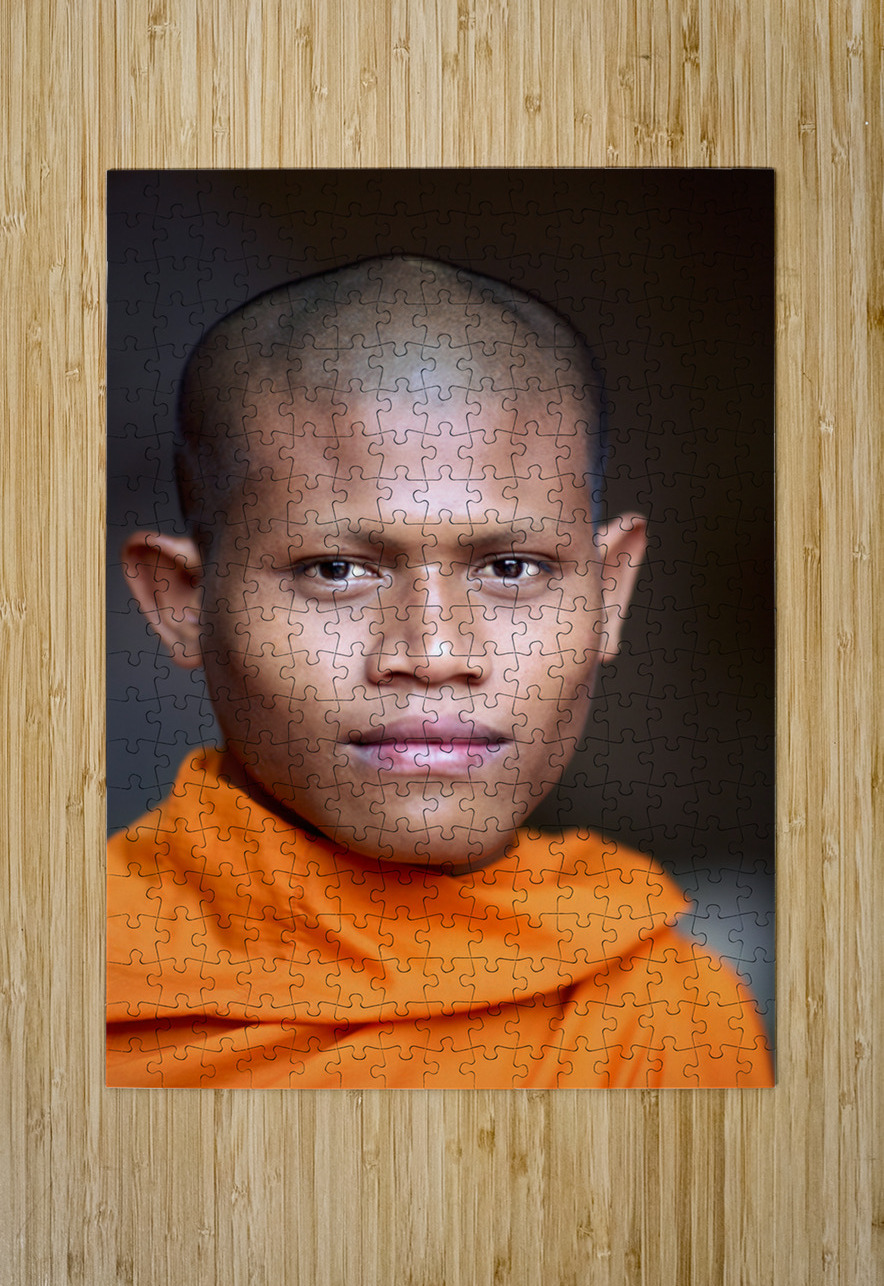 Young Buddhist monk in orange robe close up portrait. Marco Brivio Puzzle