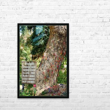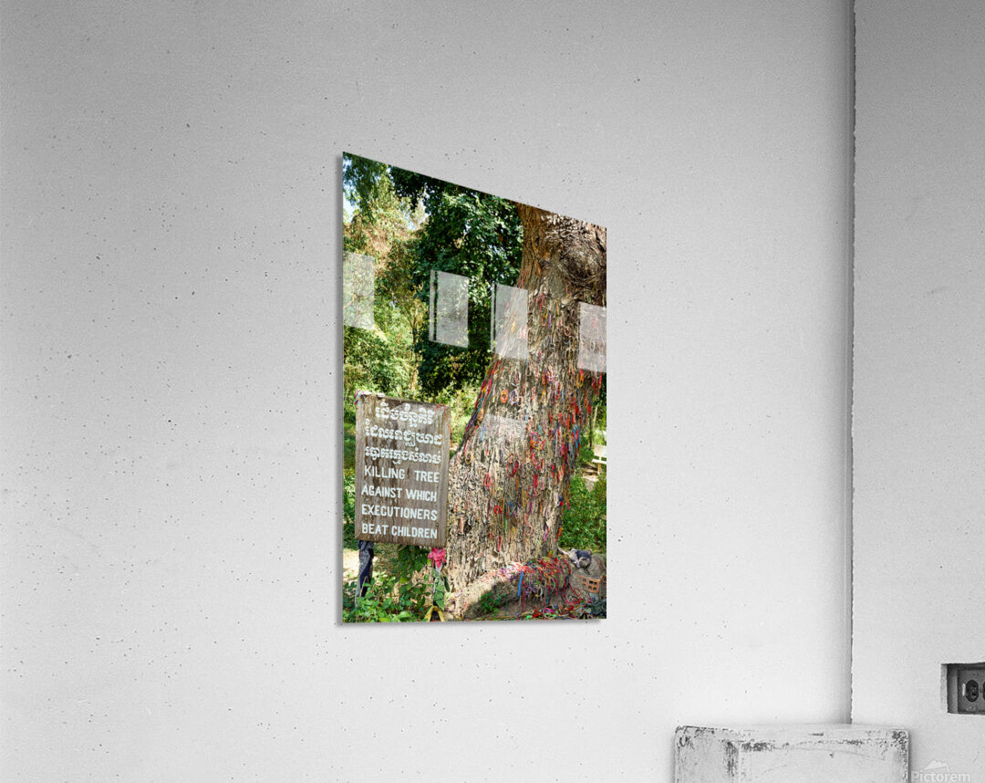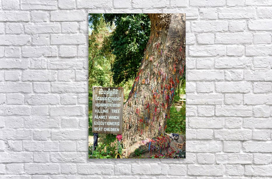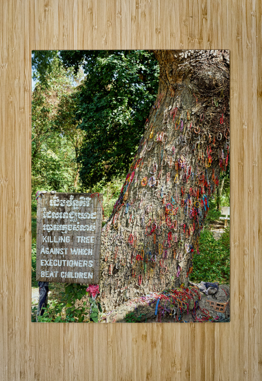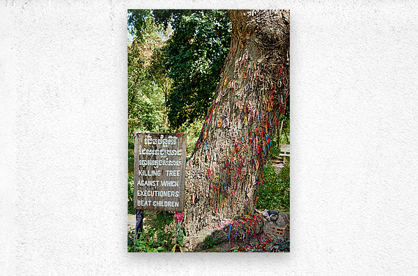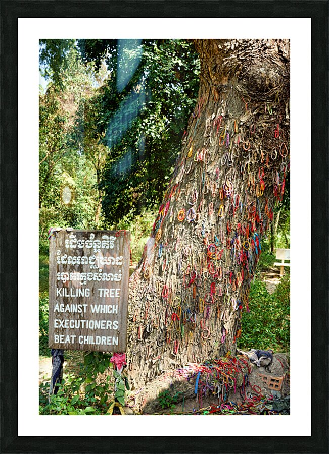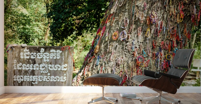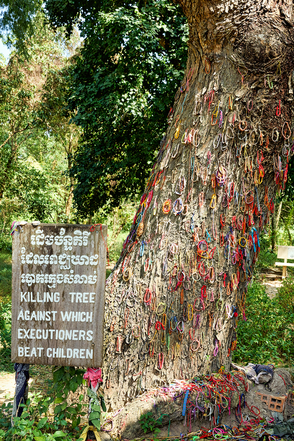 The Killing Tree at Choeung Ek Cambodia adorned with bracelets memorializes children beaten to death by Khmer Rouge executioners.