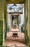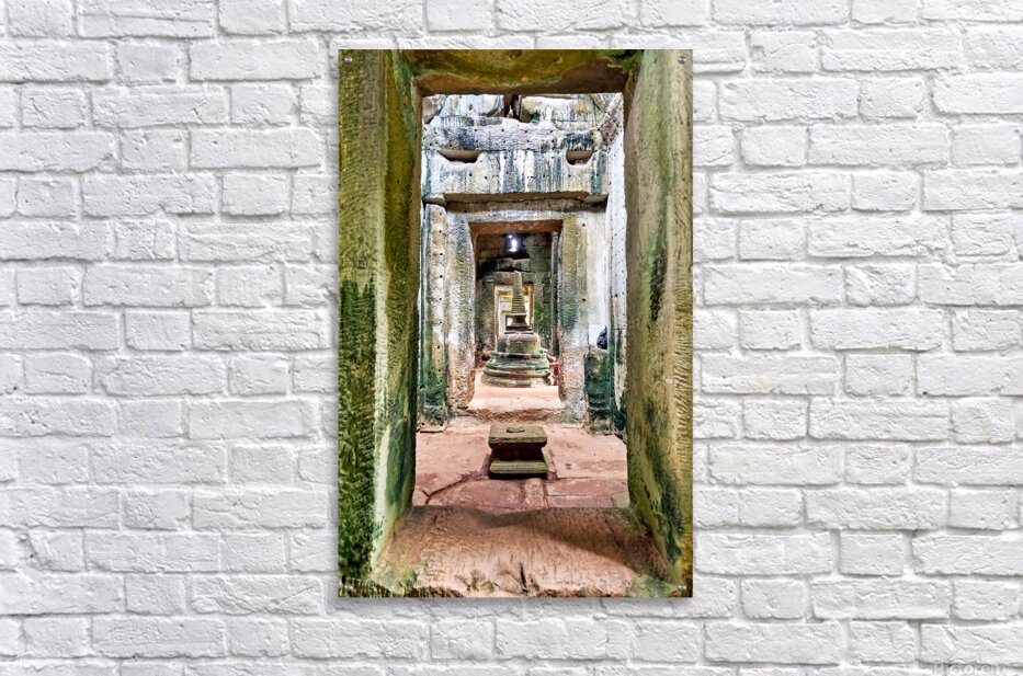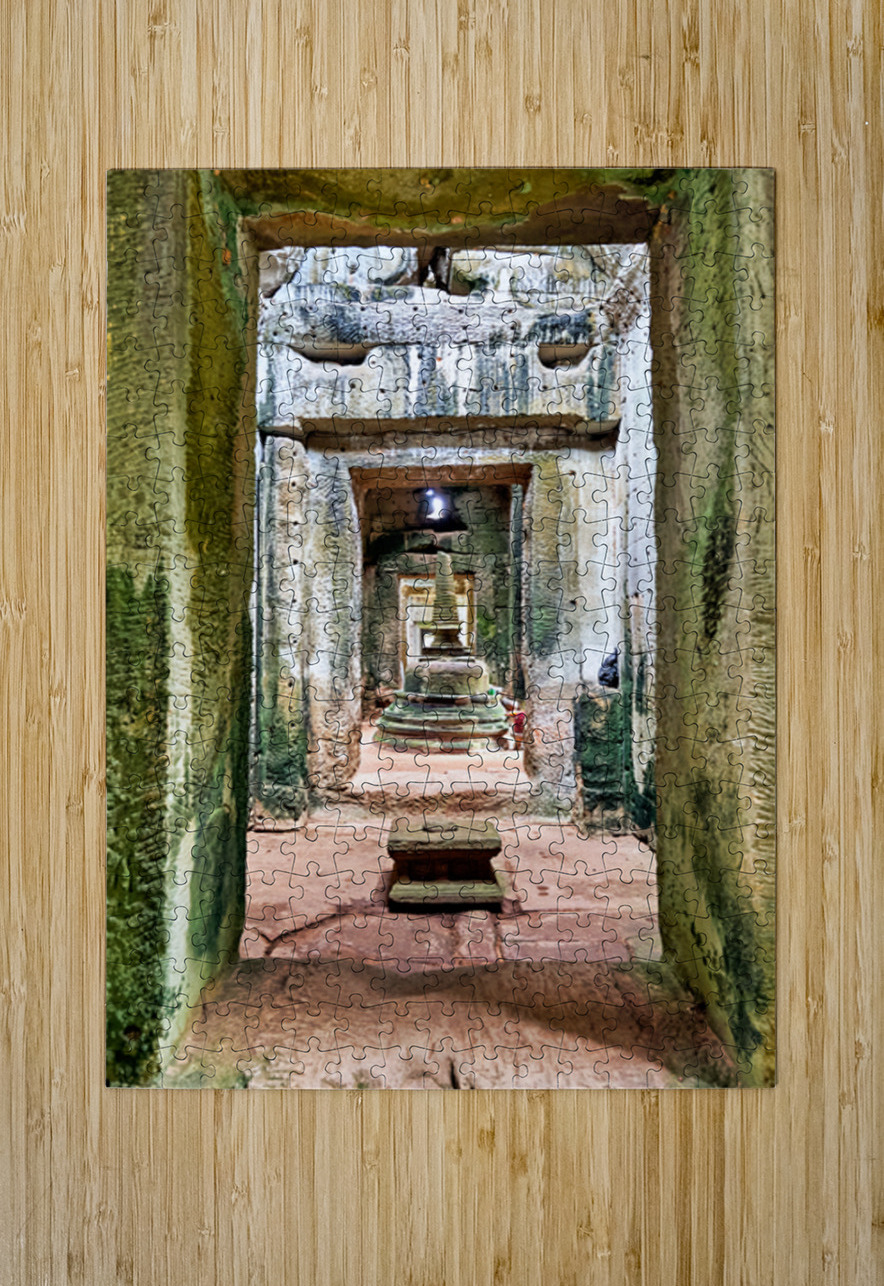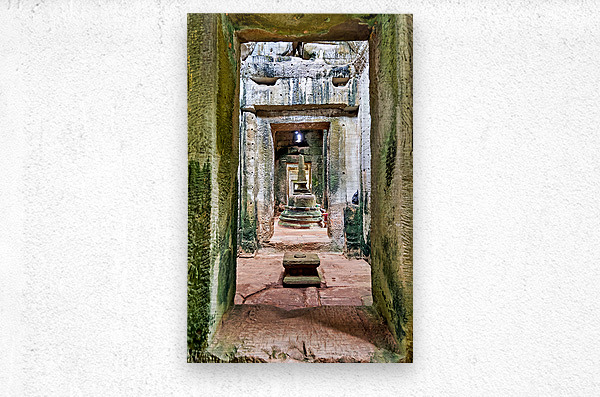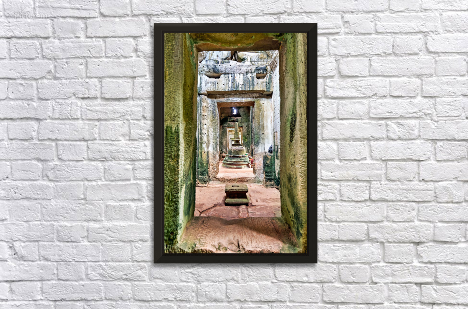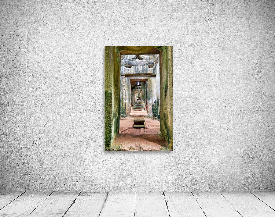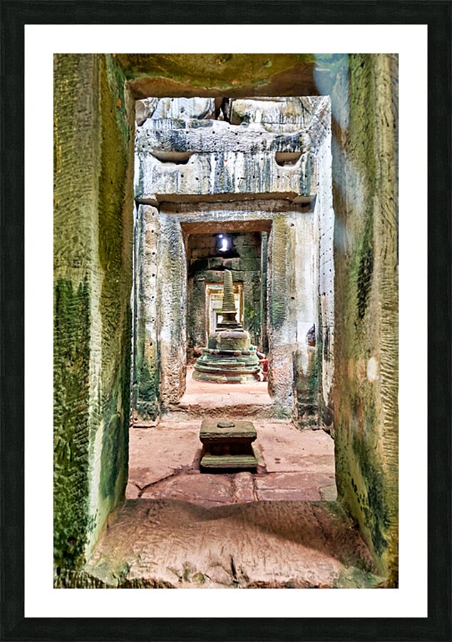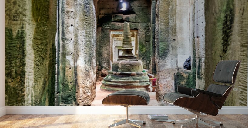 Ancient stone temple interior in Cambodia possibly Angkor featuring a tiered stupa used for worship showcasing historical architecture and spiritual d