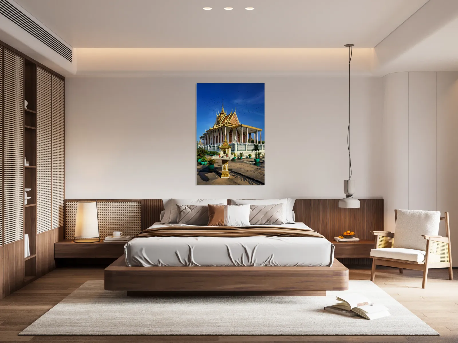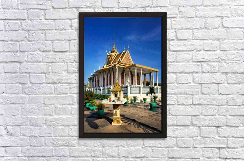 Birds fly over the Silver Pagoda at the Royal Palace in Phnom Penh Cambodia a stunning example of Khmer architecture and a sacred site.