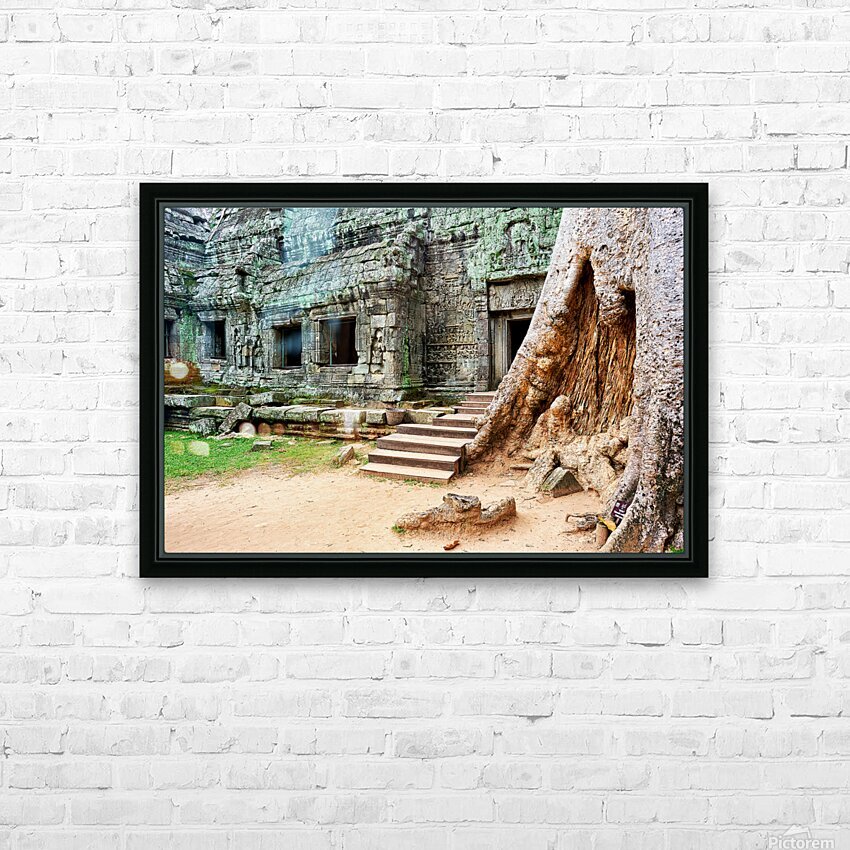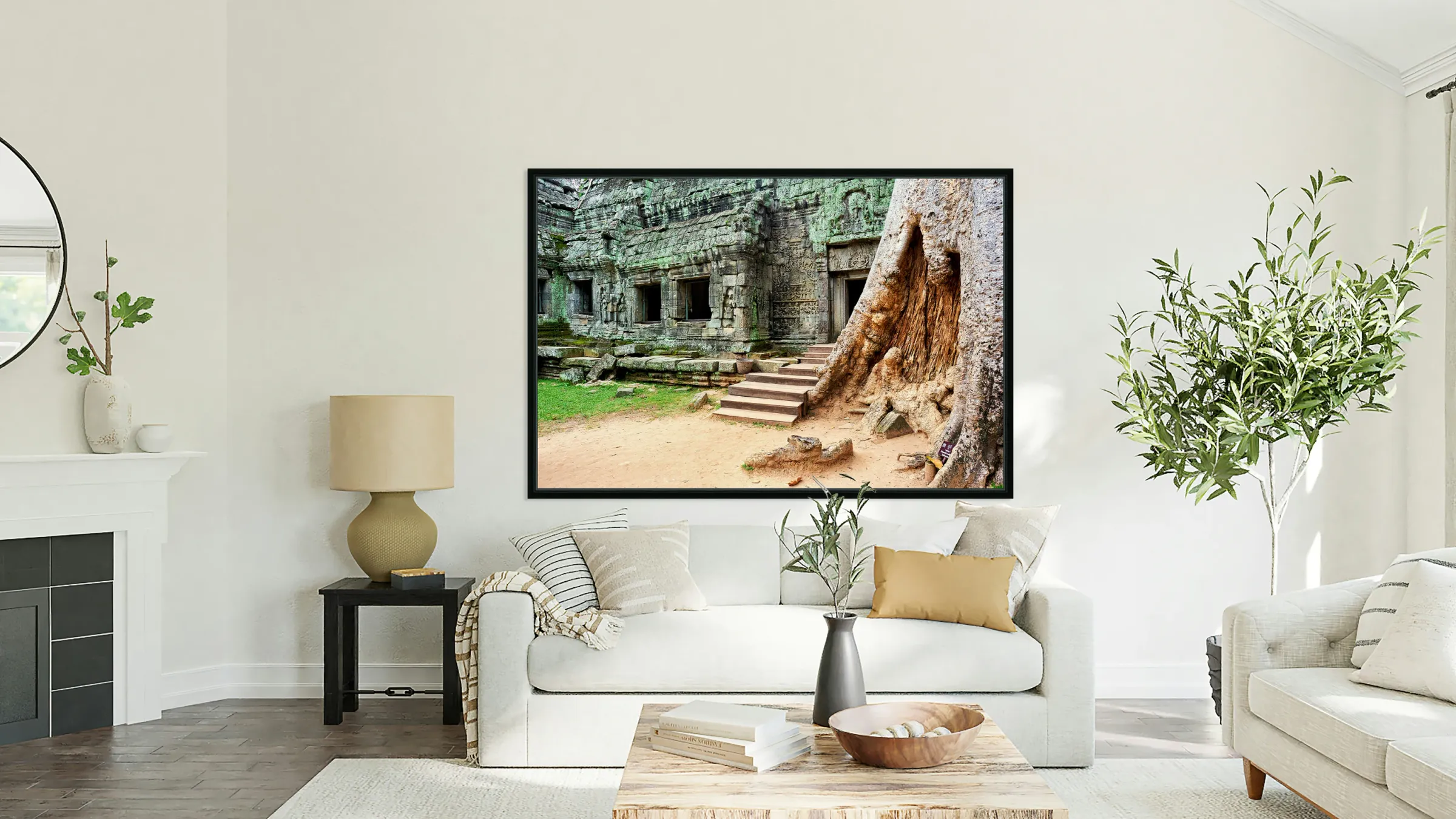 Ancient temple ruins intertwined with giant tree. Picture Frame Printing