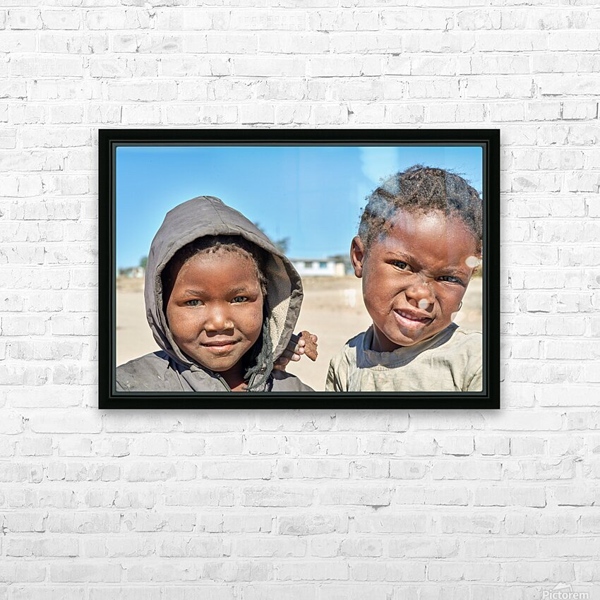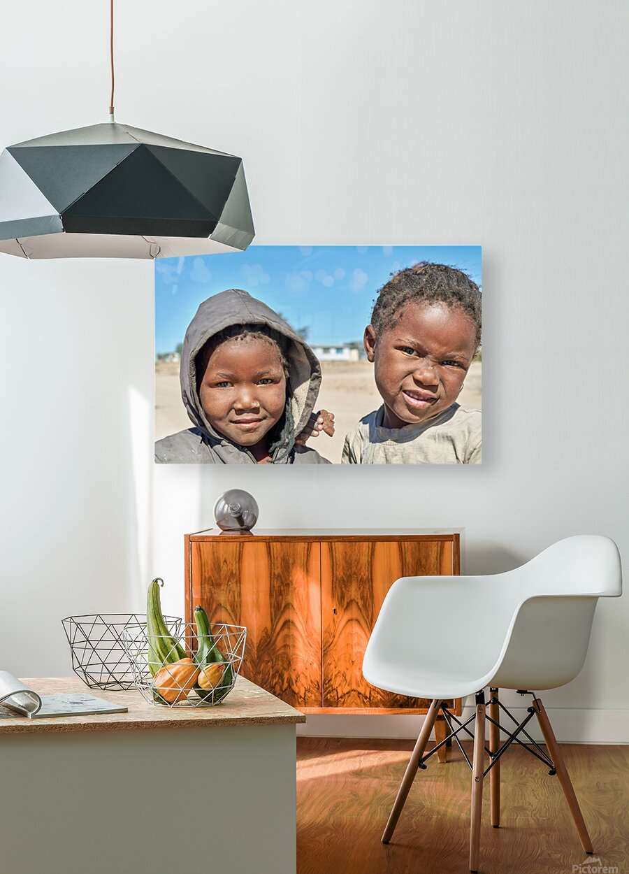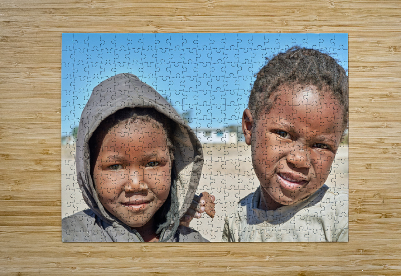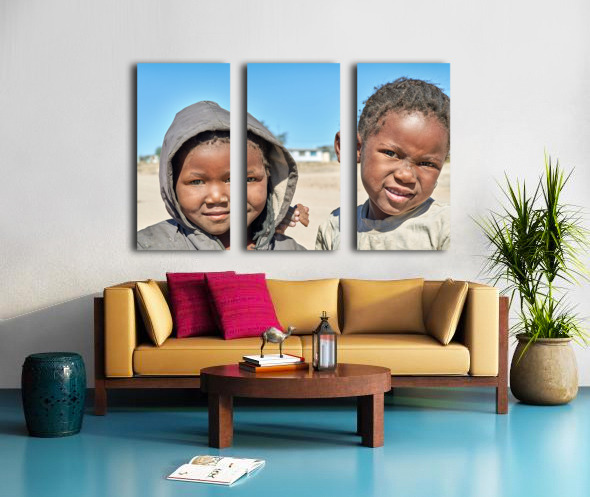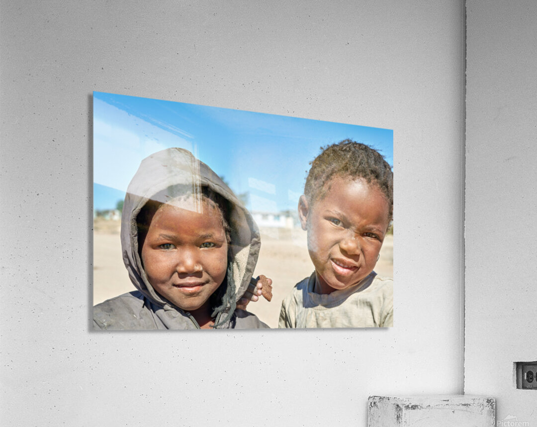 A group of children stands in their village in Damaraland Namibia showing expressions and enjoying their time together in the sun.