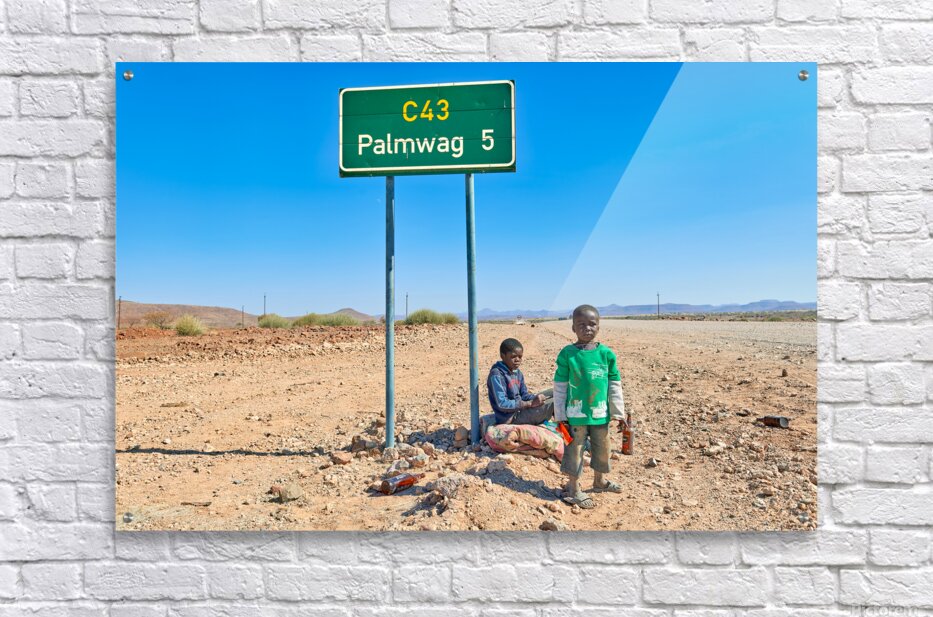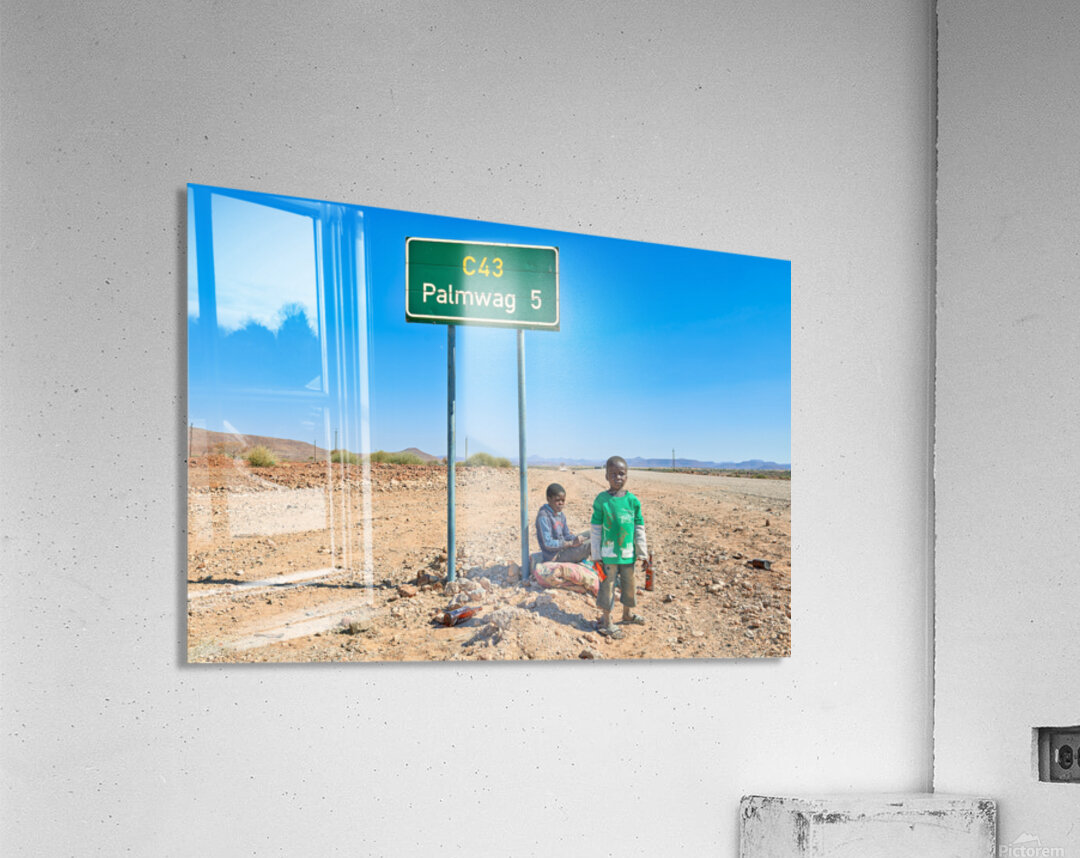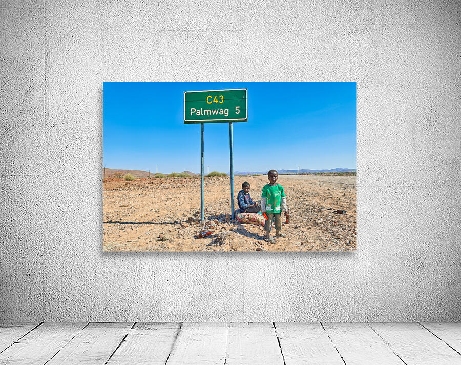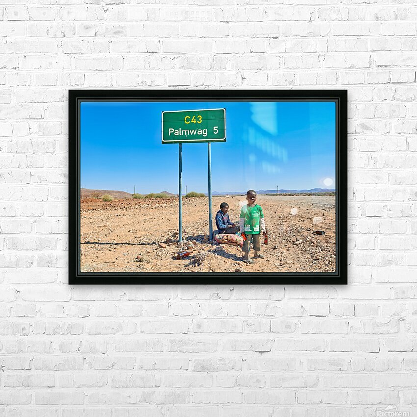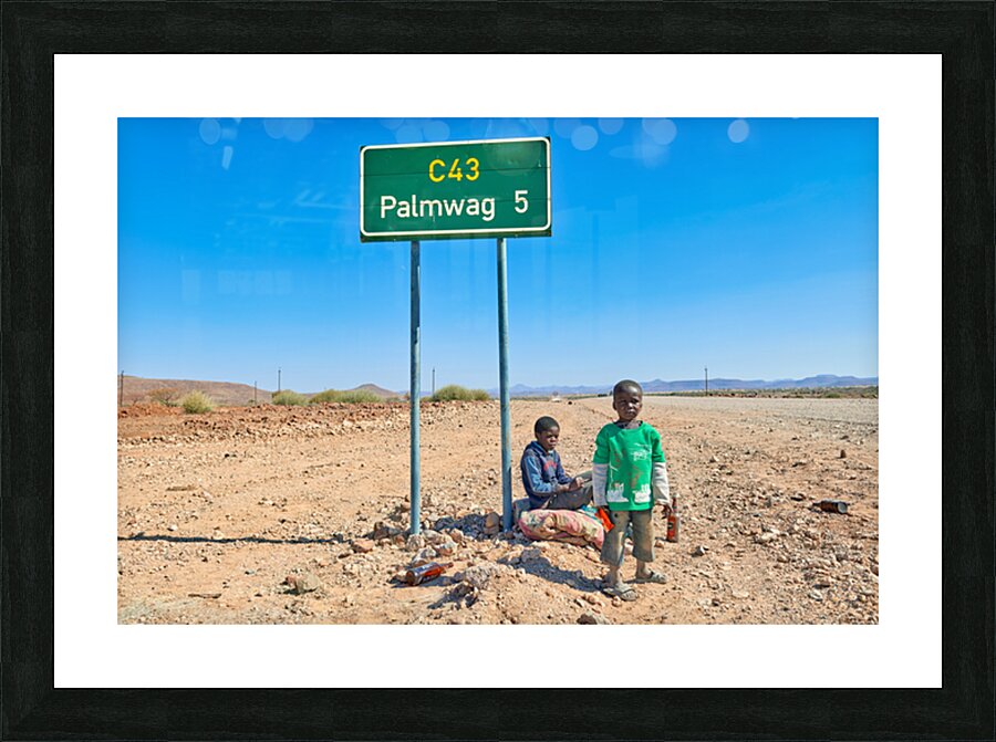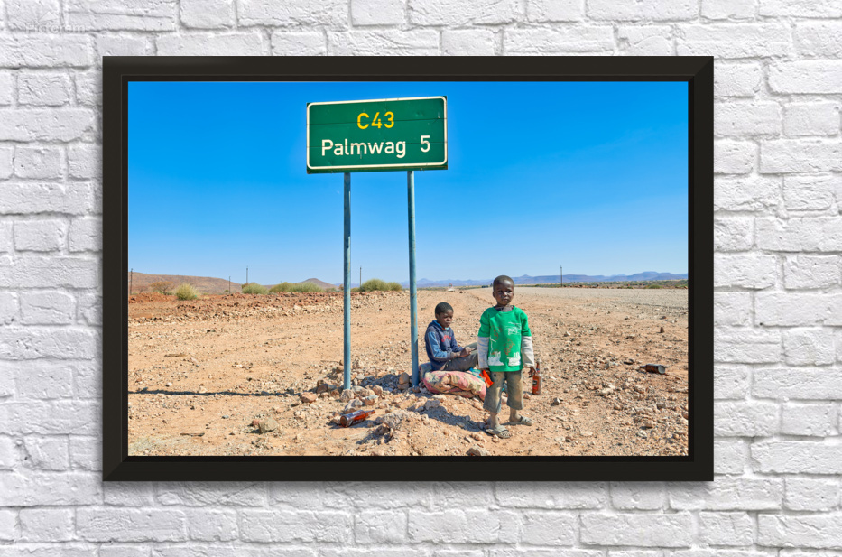 "Children near Palmwag in Kunene Region of Namibia" in a framed print.