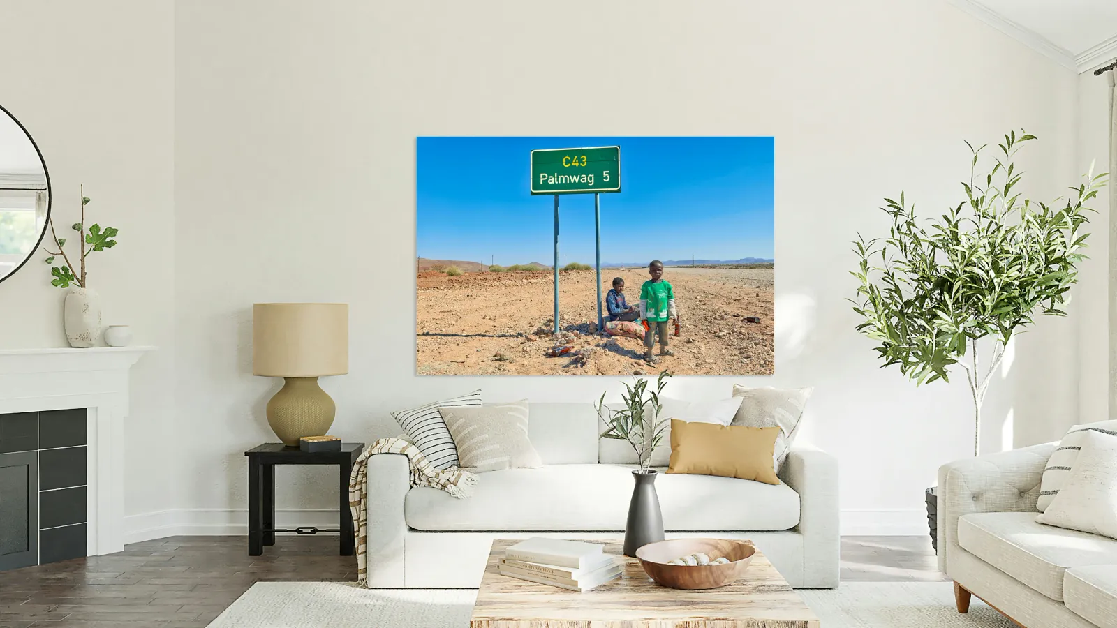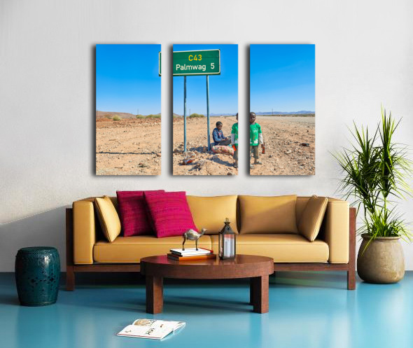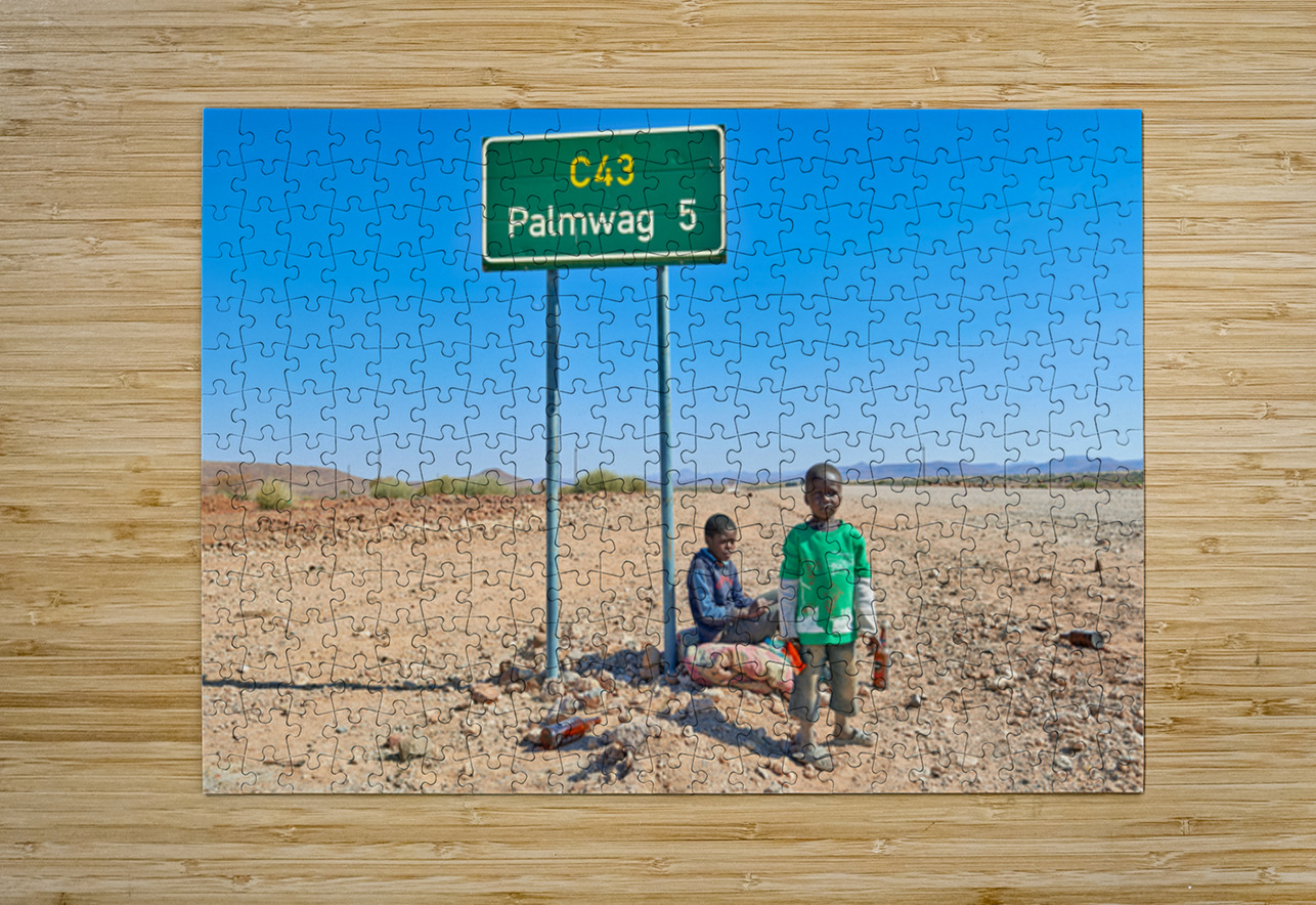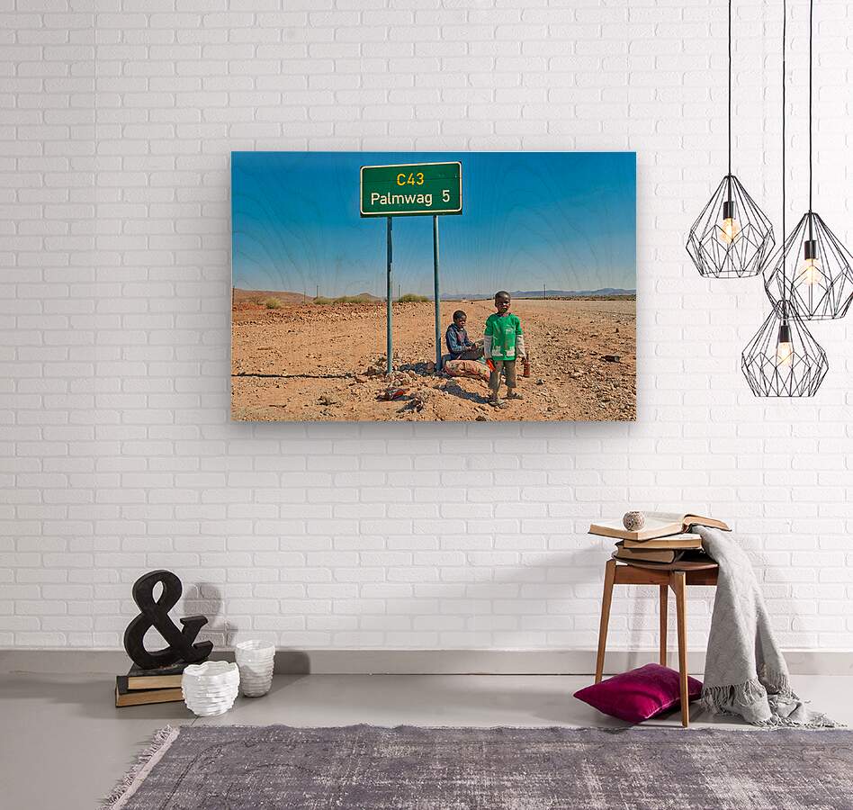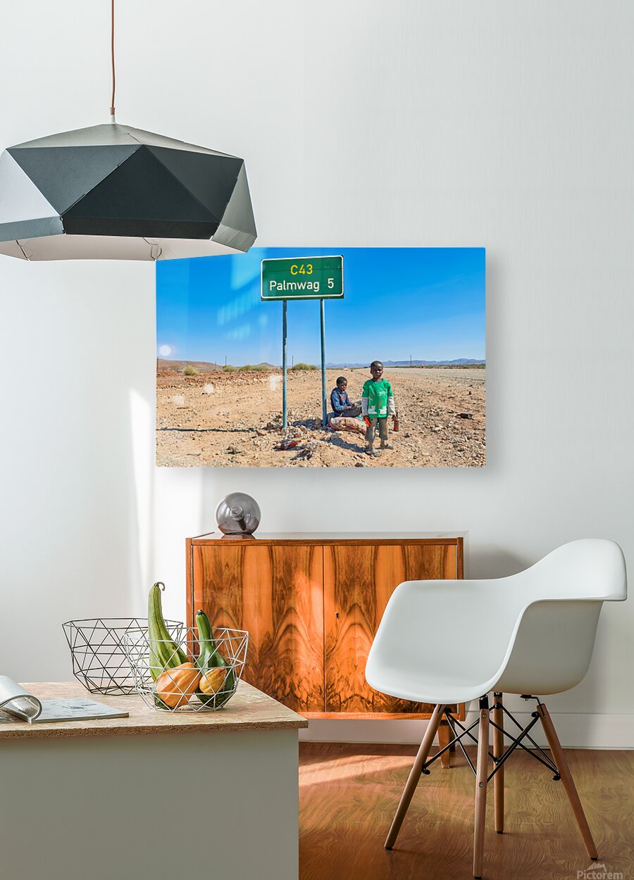 "Children near Palmwag in Kunene Region of Namibia" in a framed print.