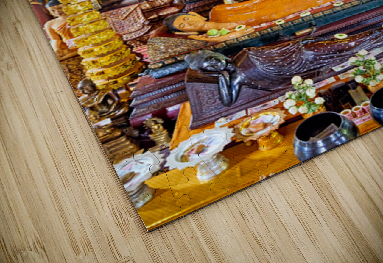 Golden Buddha statues and offerings in an ornate temple. Marco Brivio Puzzle printing