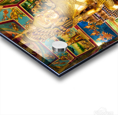 Ornate golden Buddha statue in a richly decorated temple. Picture Frame Printing