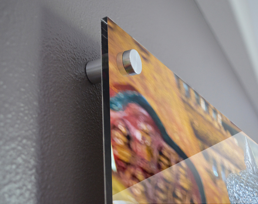 Printed to the edge - Ready to hang - provided with 4 premium polished aluminum stand off ( wall screws and mounting hardware provided )