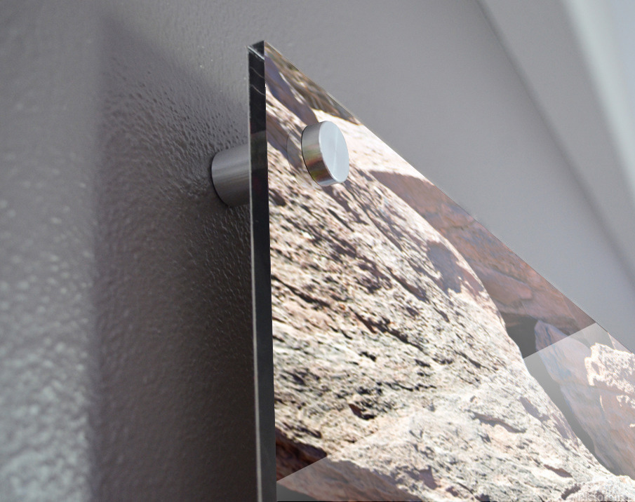 Printed to the edge - Ready to hang - provided with 4 premium polished aluminum stand off ( wall screws and mounting hardware provided )