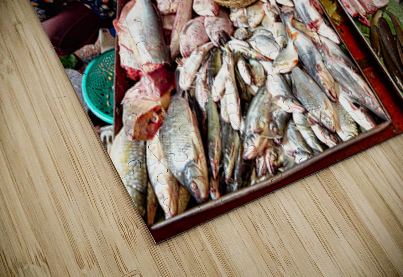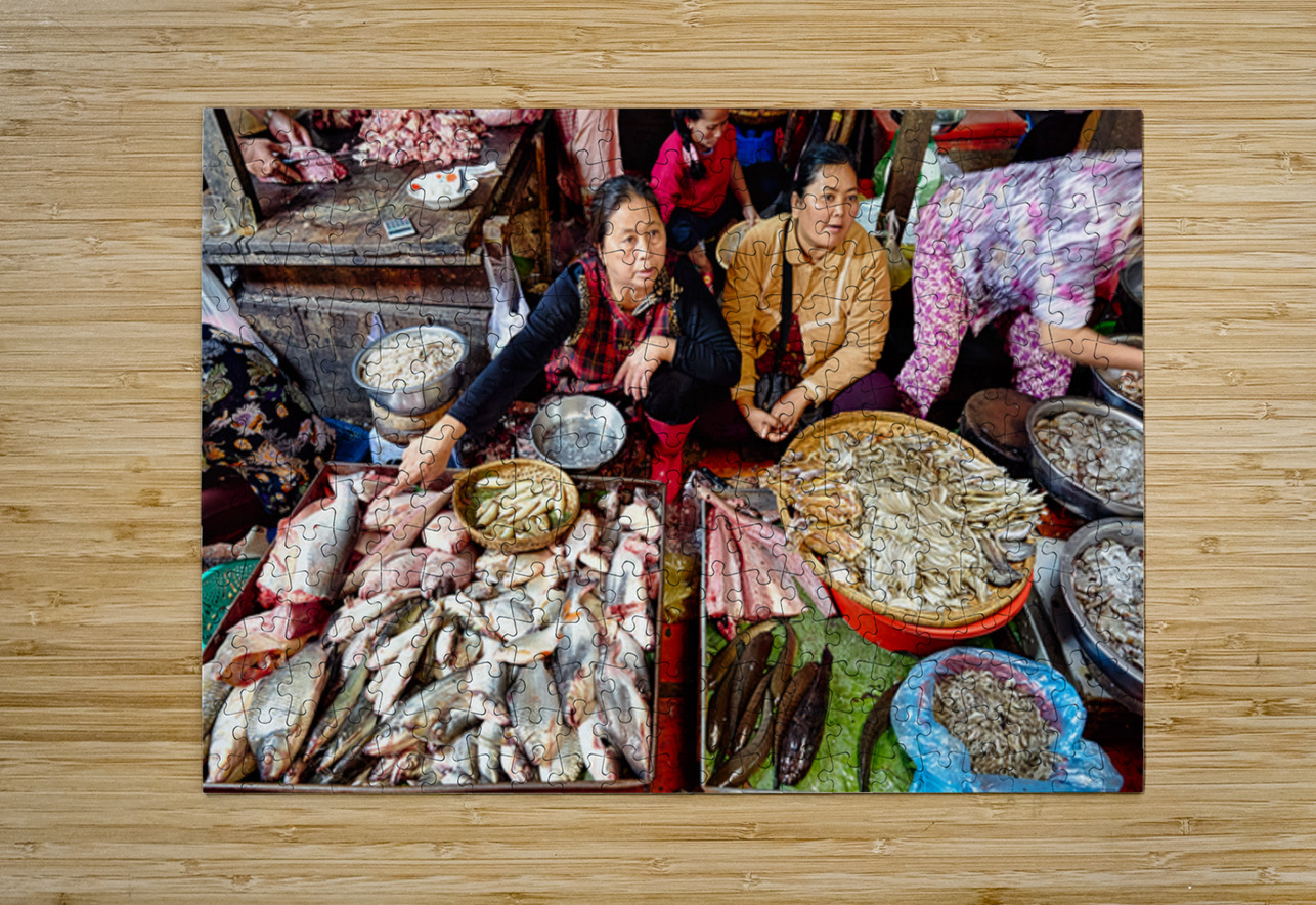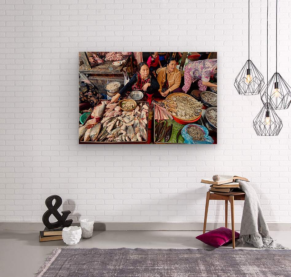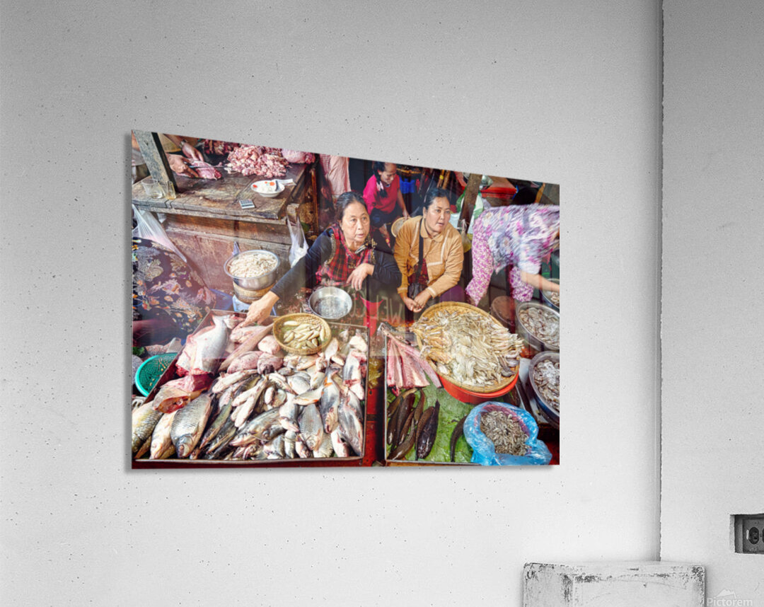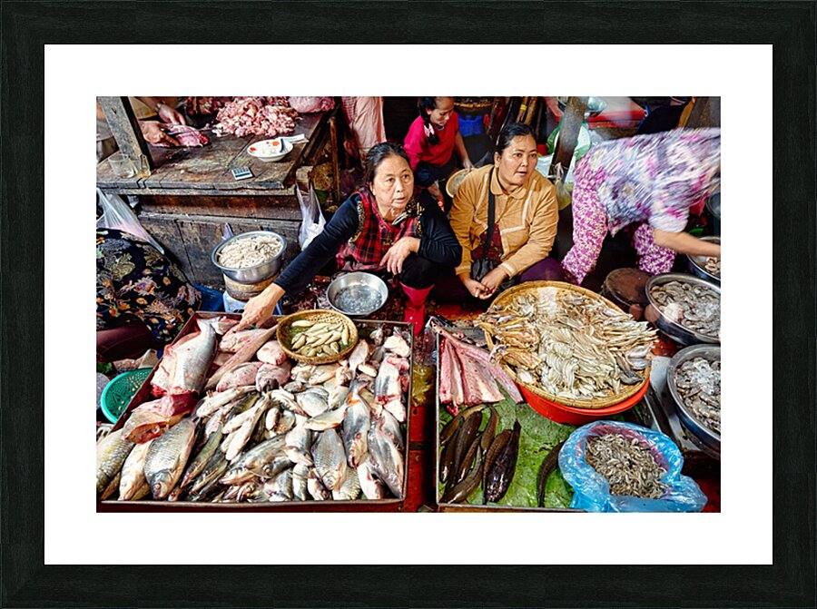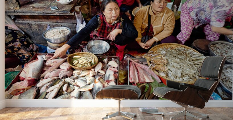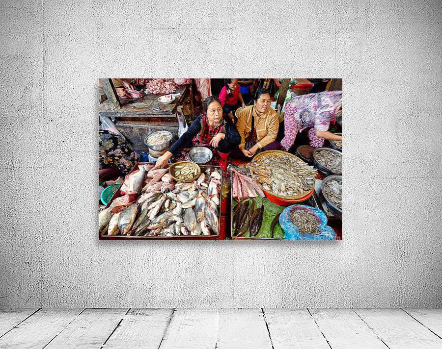 Women vendors sell a variety of fresh fish dried seafood and raw meat at a vibrant market providing essential food items for the community.