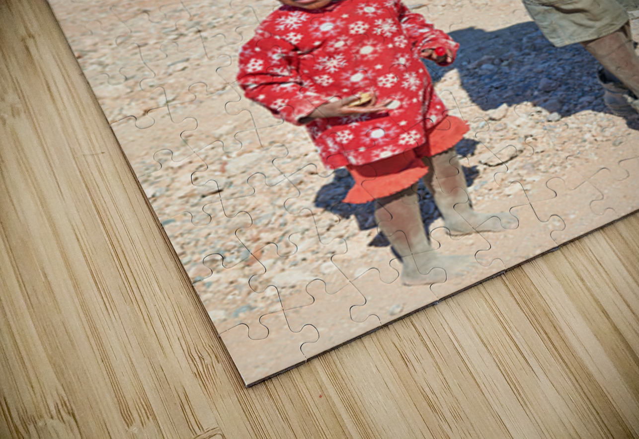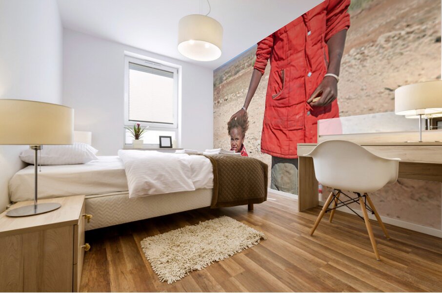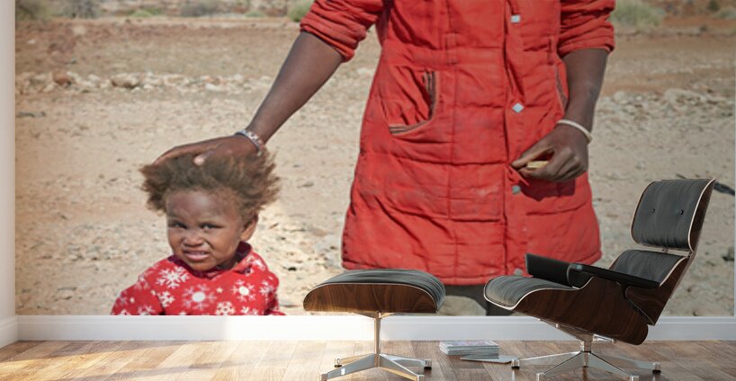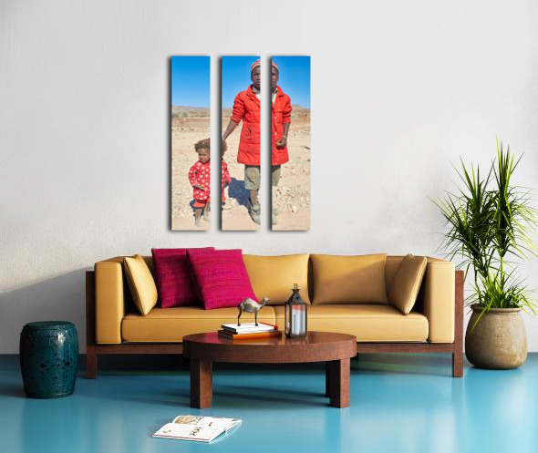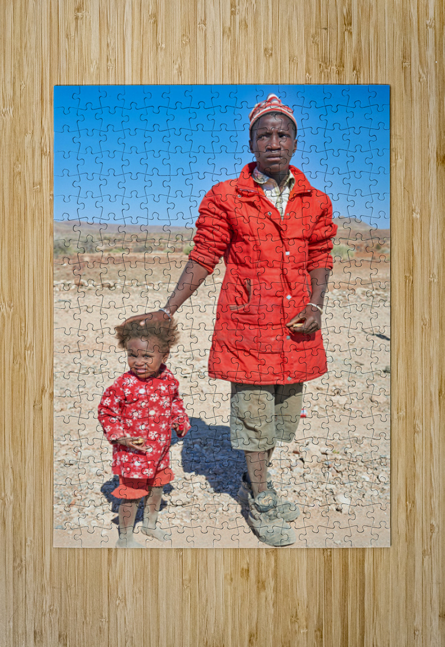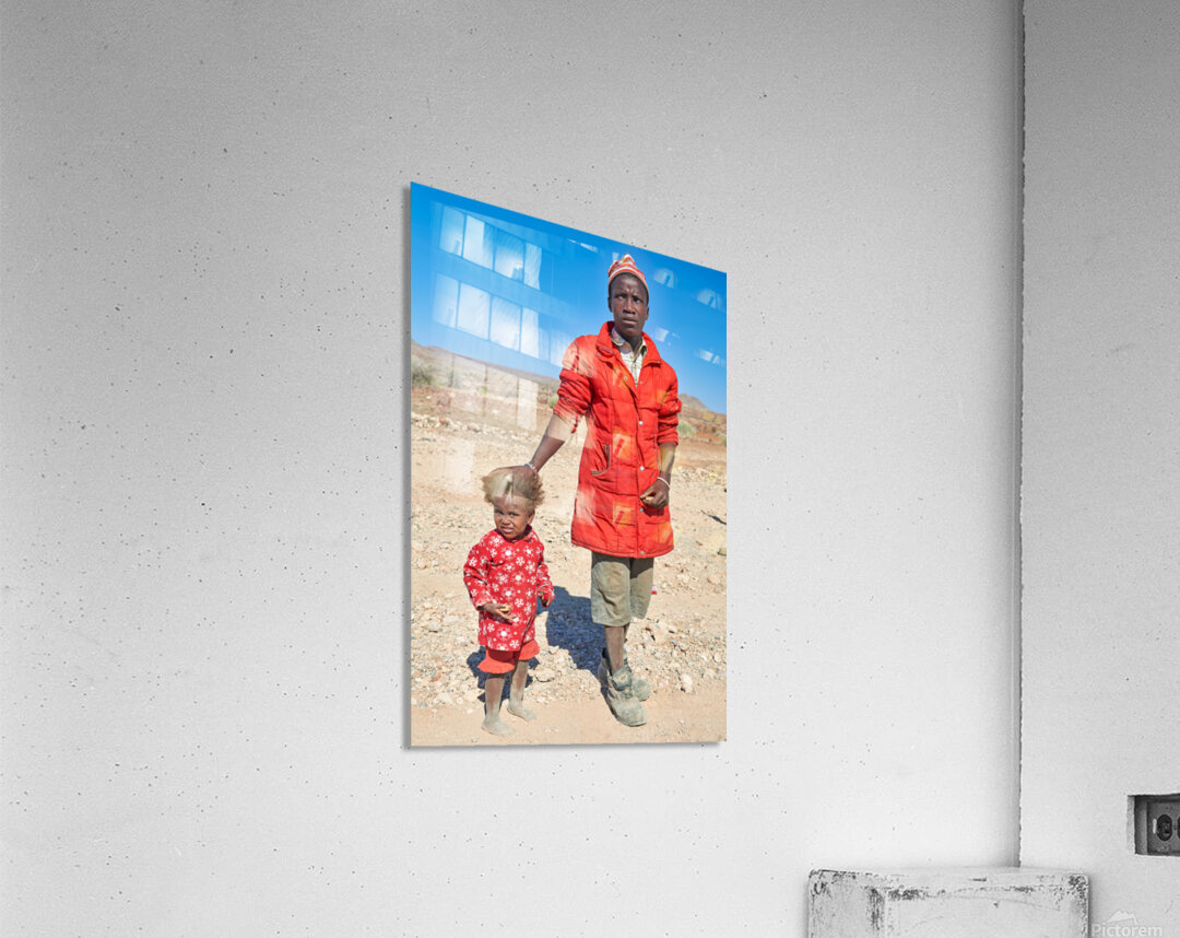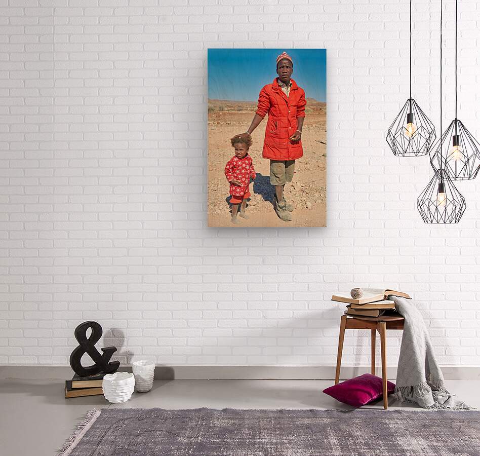 "Father and daughter stand together in Palmwag Kunene Region" in a framed print.