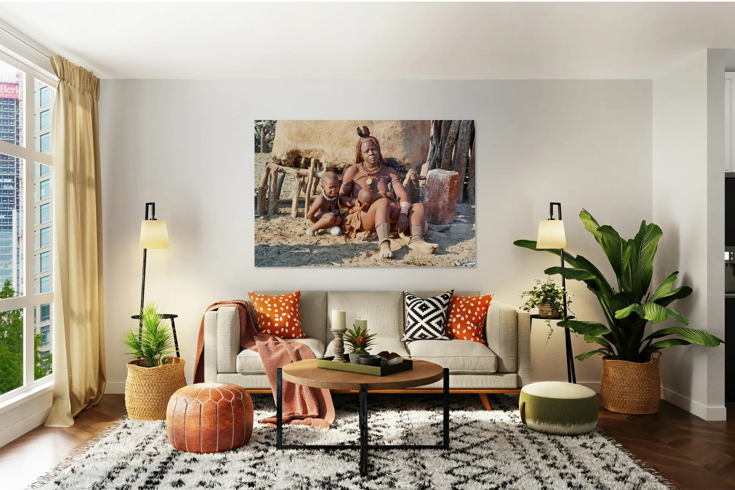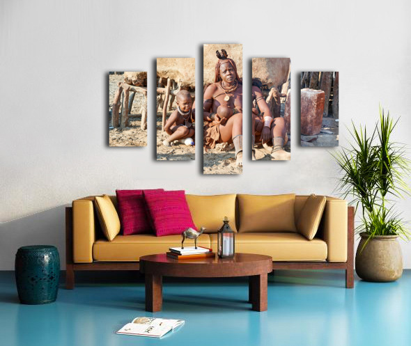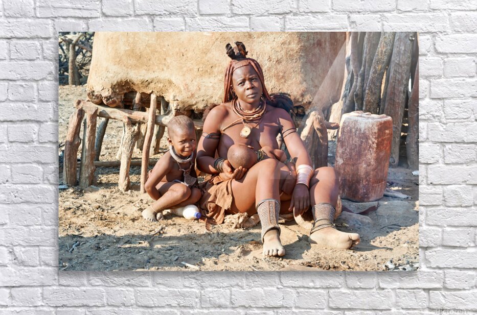 ABOUT THIS ARTWORK: MOTHER AND SON IN HIMBA VILLAGE IN KUNENE REGION OF NAMIBIA