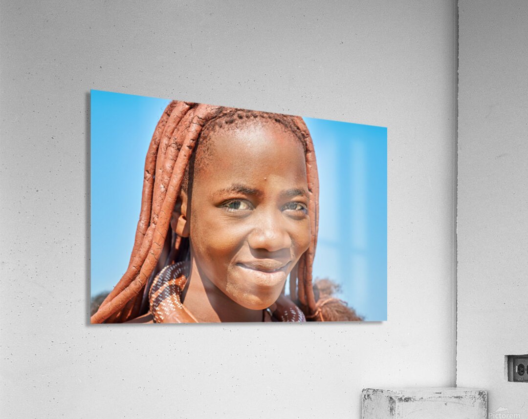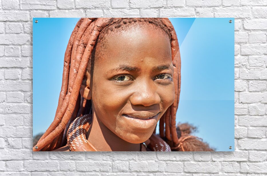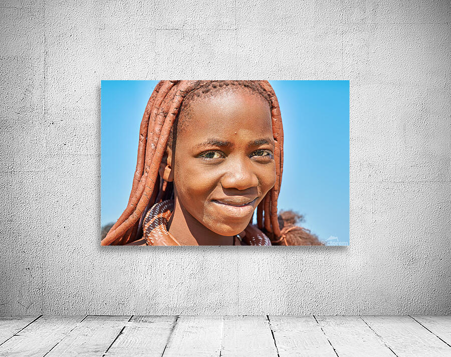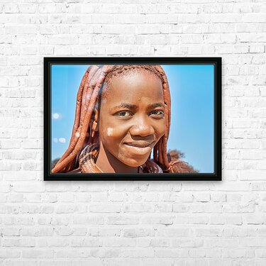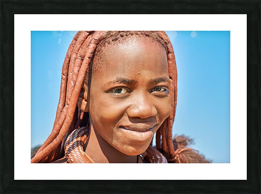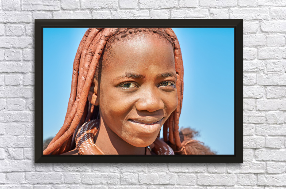 "Portrait of Himba woman in Kunene region of Namibia" in a framed print.