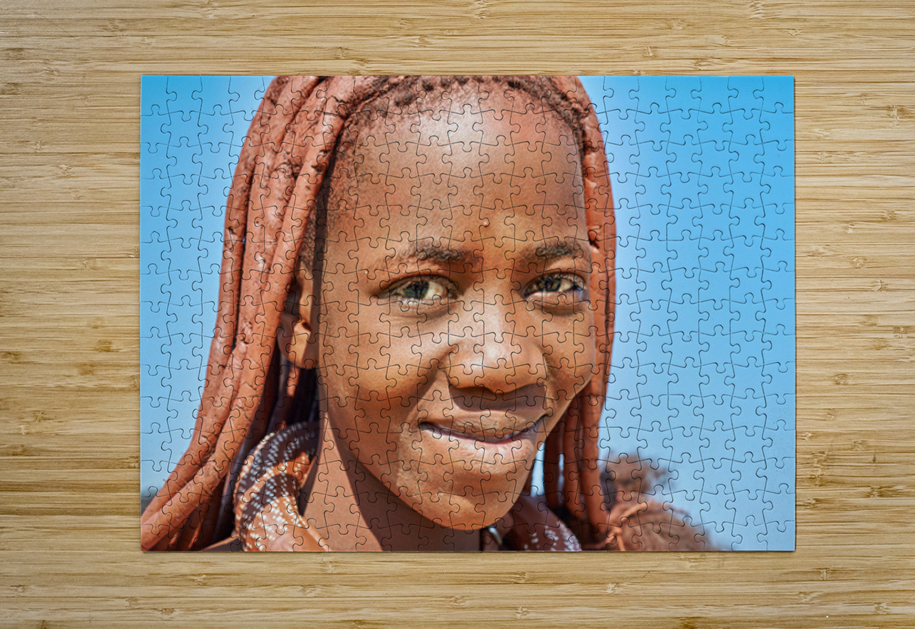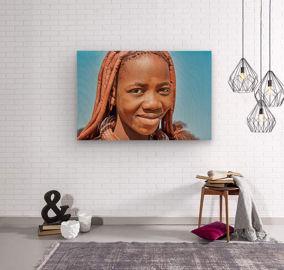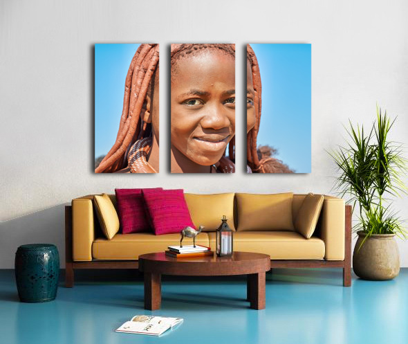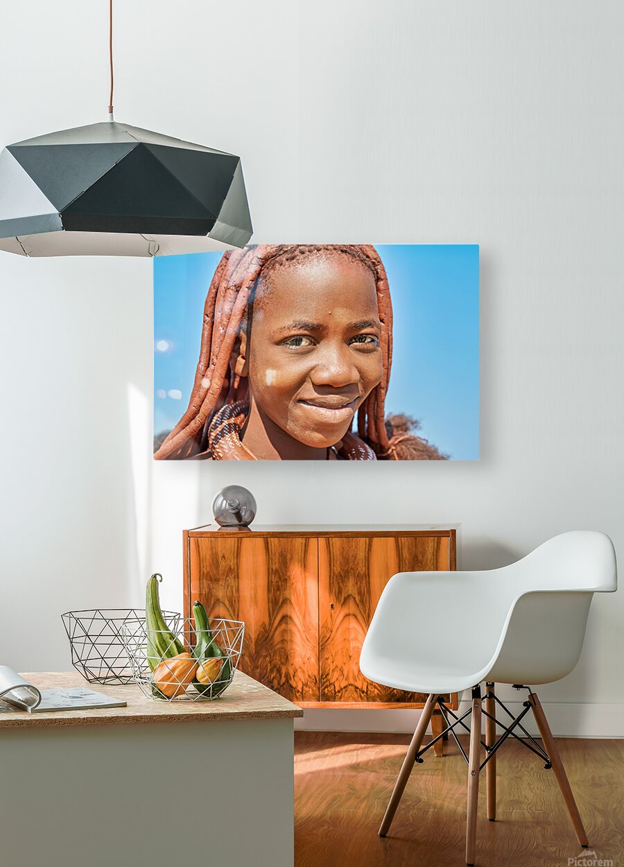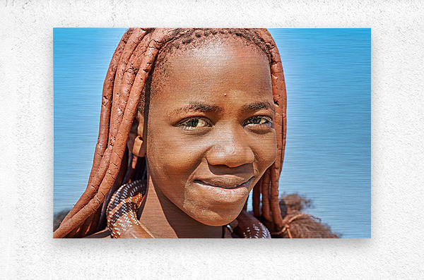 "Portrait of Himba woman in Kunene region of Namibia" in a framed print.