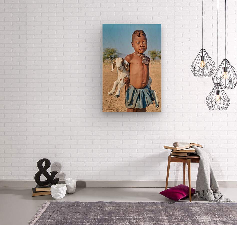 ABOUT THIS ARTWORK: HIMBA CHILD HOLDING A GOAT IN KUNENE REGION OF NAMIBIA