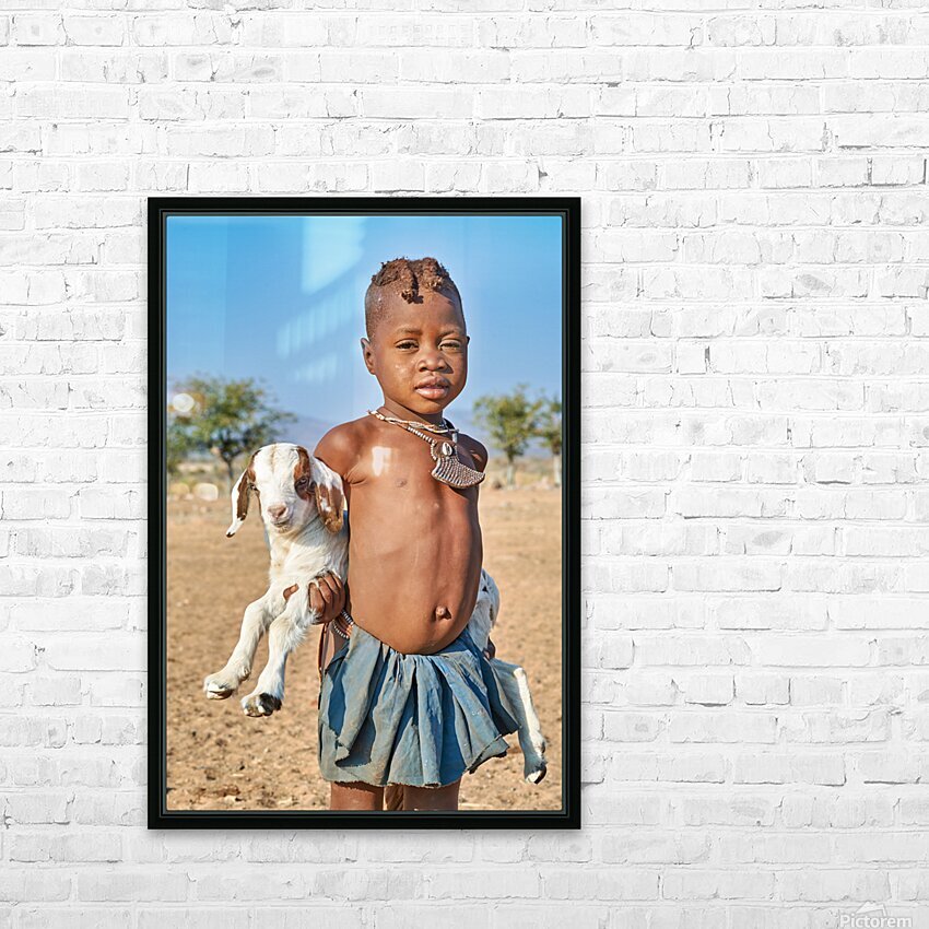 Get this artwork "Himba child holding a goat in Kunene Region of Namibia" in a framed print.