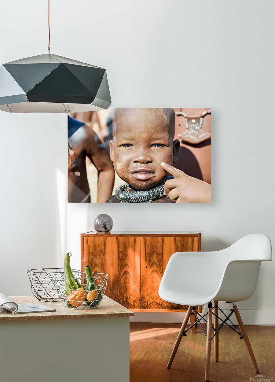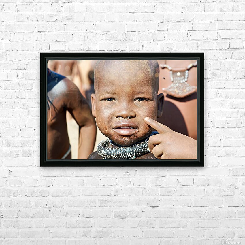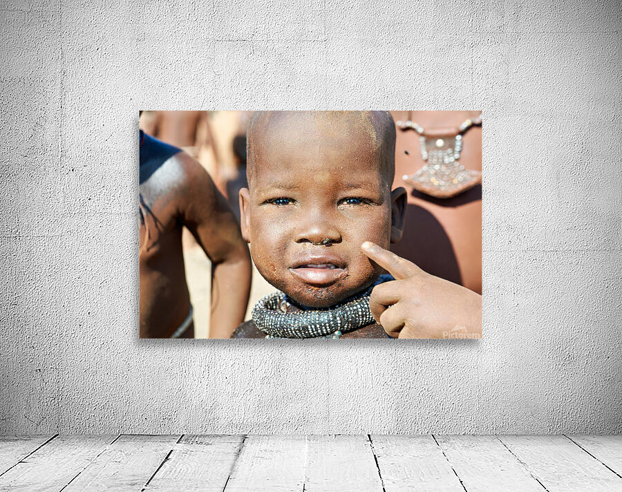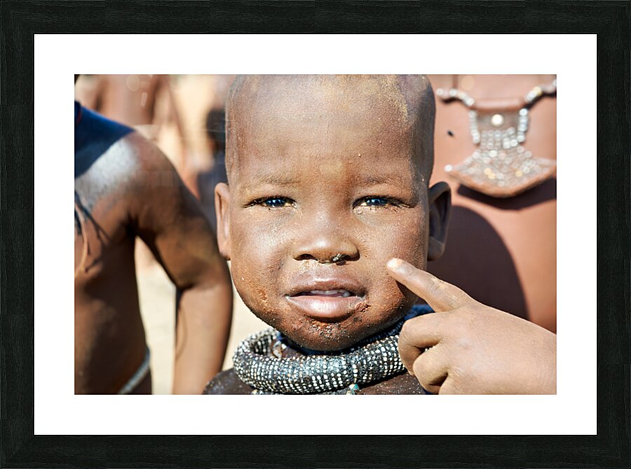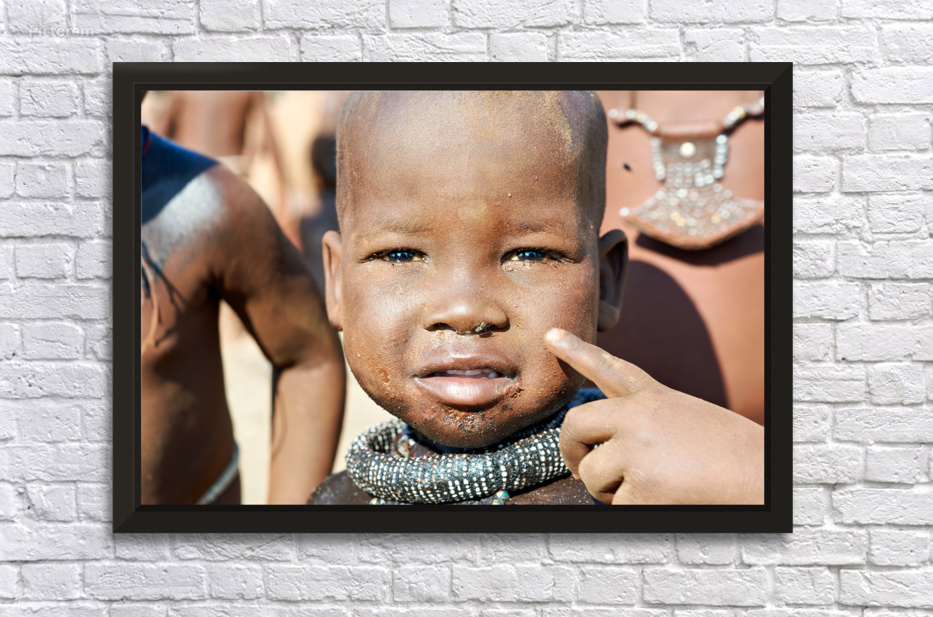 "Himba child in Kunene Region of Namibia" in a framed print.