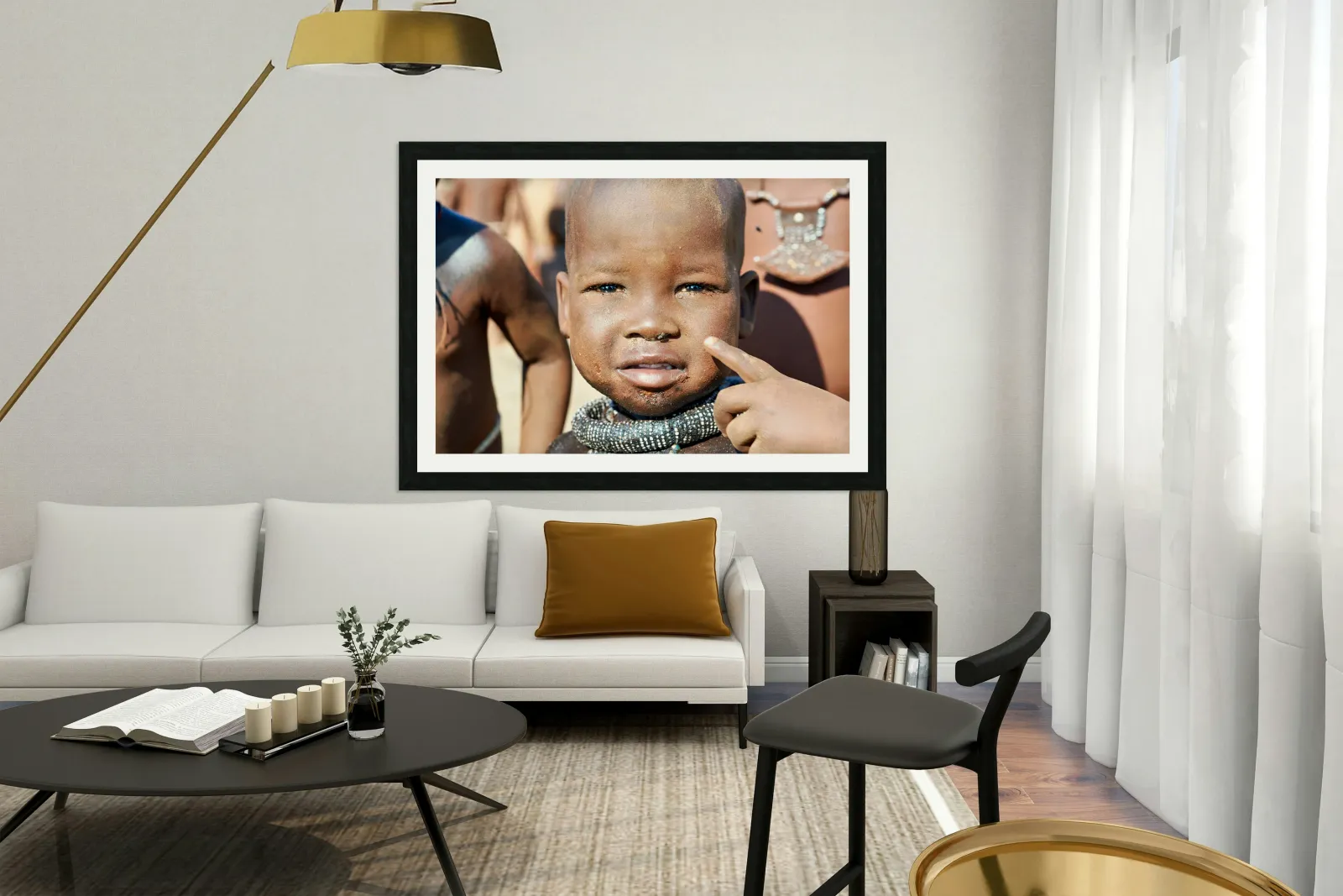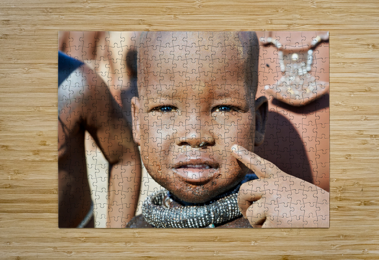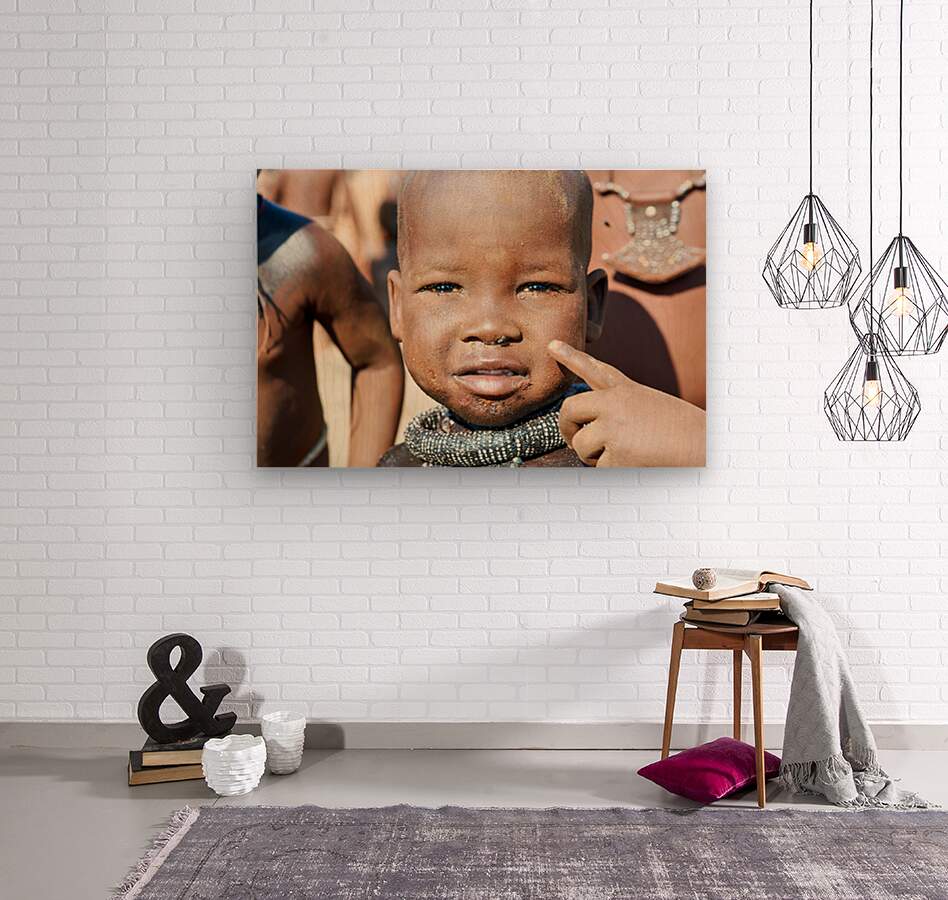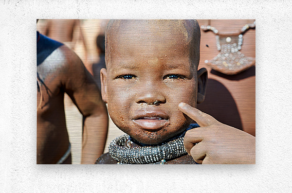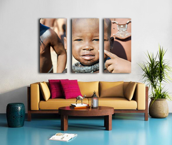"Himba child in Kunene Region of Namibia" in a framed print.