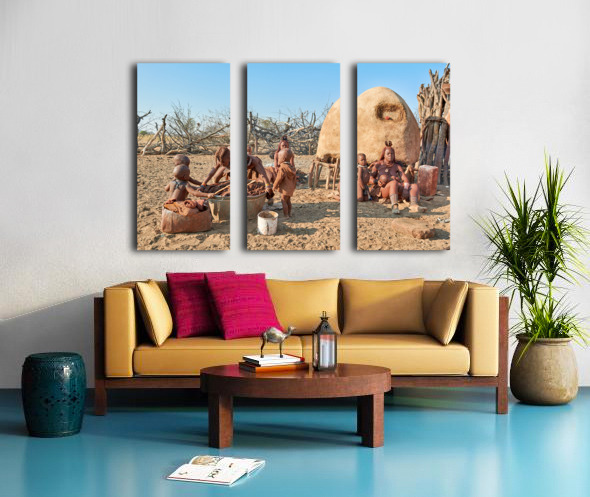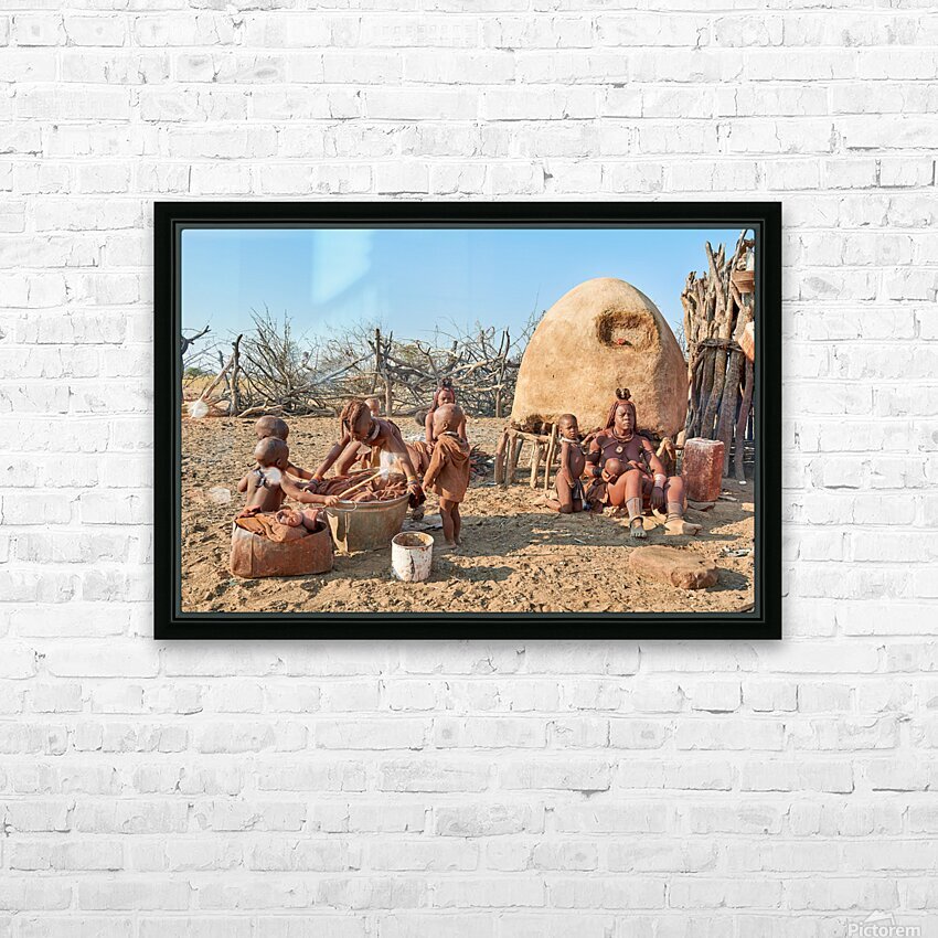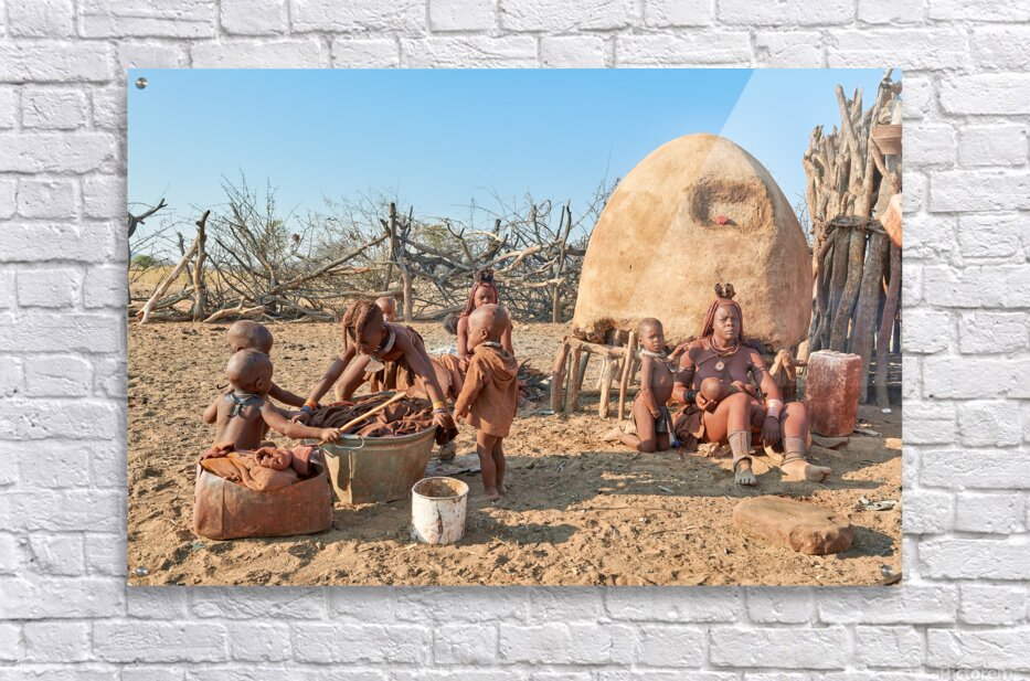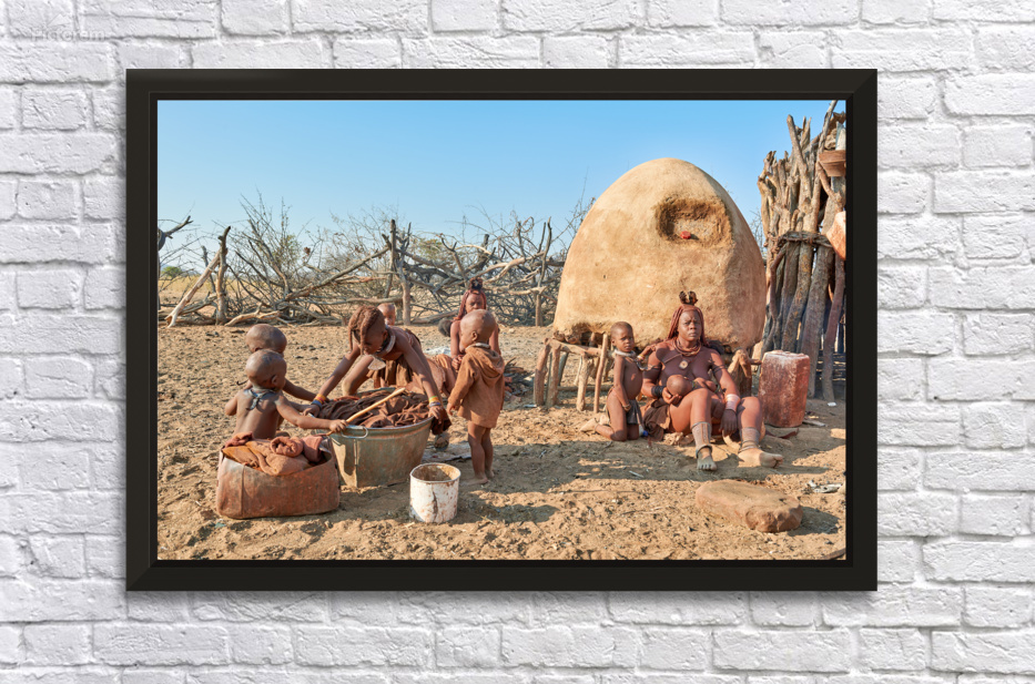 Children play and adults work in a Himba village in Namibias Kunene Region. Daily tasks show life and culture of the Himba people.