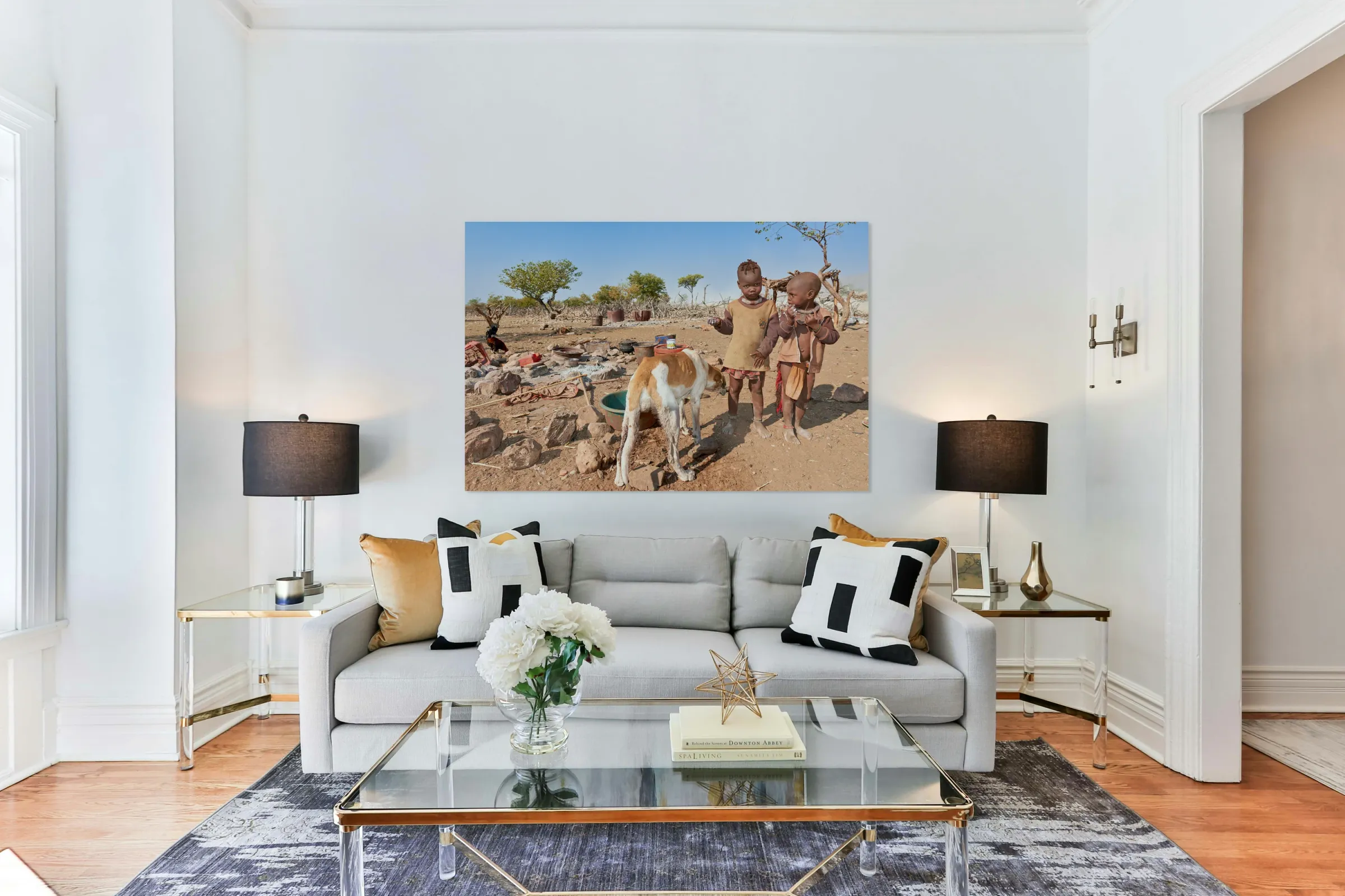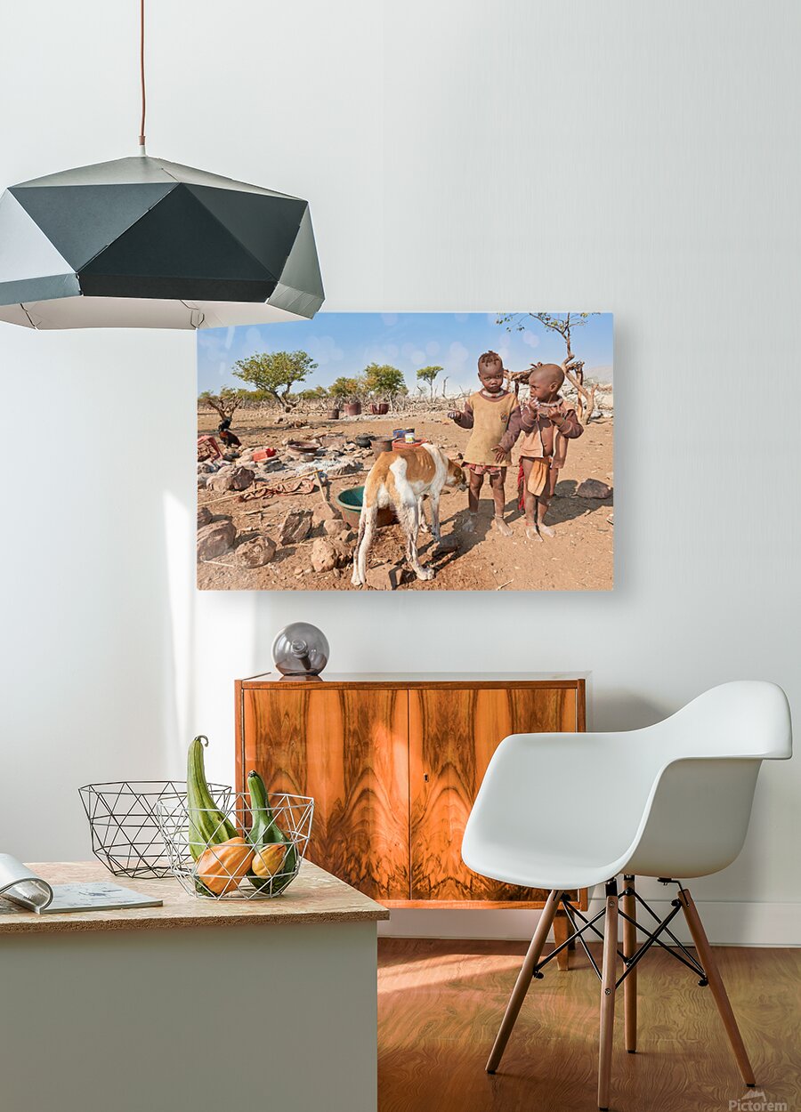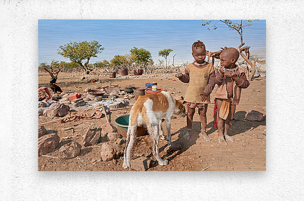 ABOUT THIS ARTWORK: CHILDREN PLAYING NEAR THEIR HOME IN HIMBA VILLAGE IN NAMIBIA