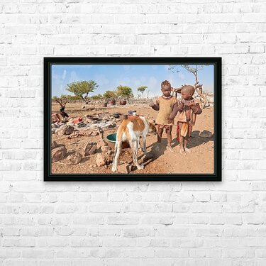 Get this artwork "Children playing near their home in Himba Village in Namibia" in a framed print.