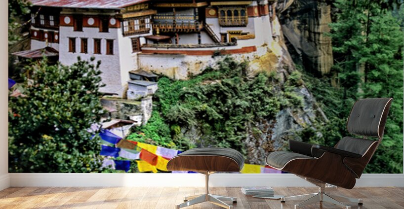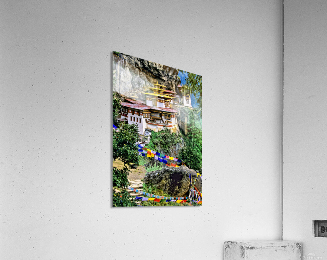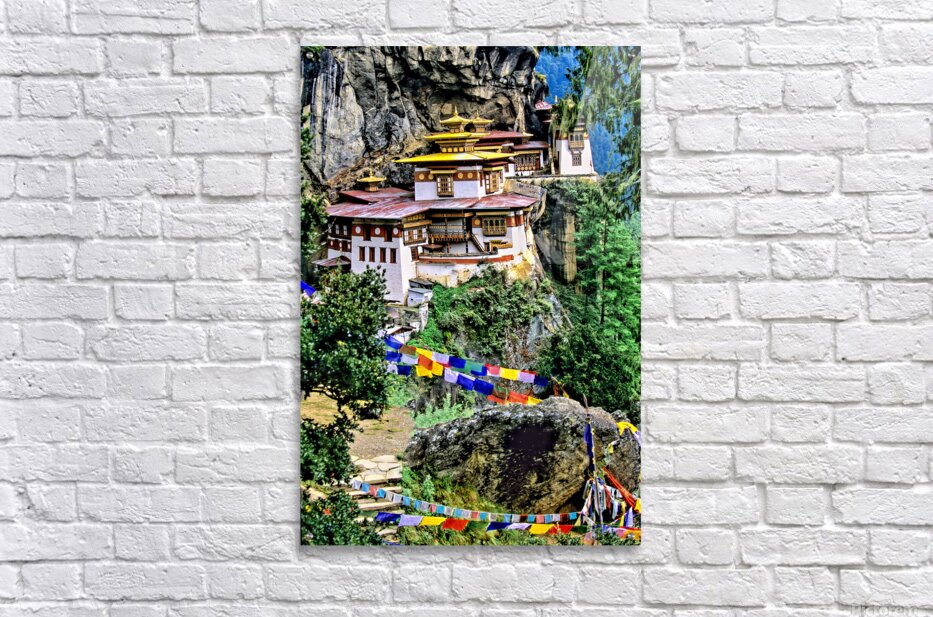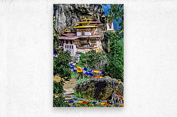 ABOUT THIS ARTWORK: ICONIC BHUTANESE MONASTERY ON A CLIFF SURROUNDED BY PRAYER FLAG