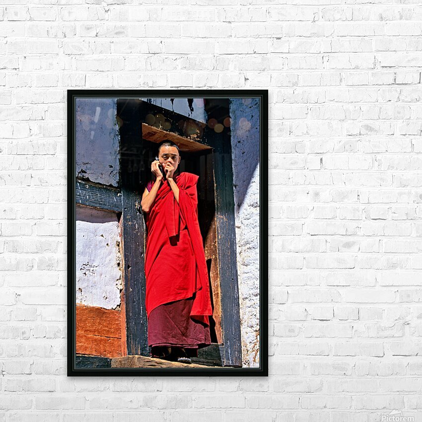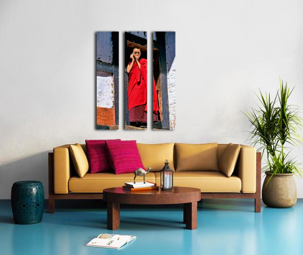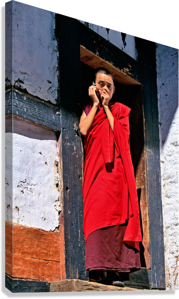 Get this artwork "Monk in red robes on cell phone." in a framed print.
