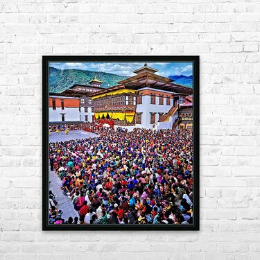 Large crowd at a traditional Bhutanese festival. Picture Frame Printing