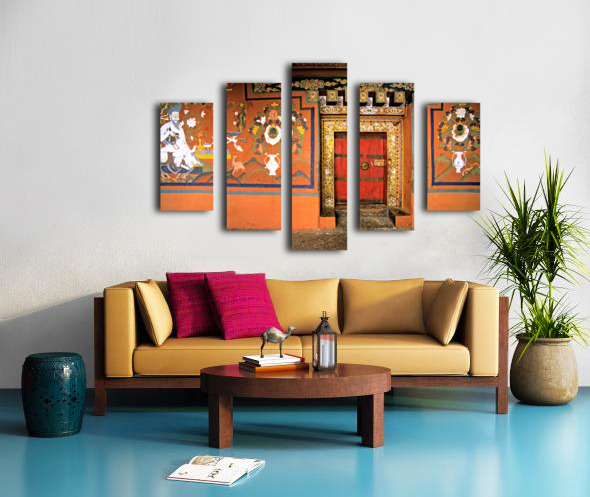 Vibrant wall murals and an ornate red door. Picture Frame Printing