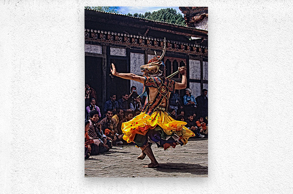 ABOUT THIS ARTWORK: BHUTANESE MASKED DEER DANCER PERFORMS FOR AN ATTENTIVE AUDIENCE.