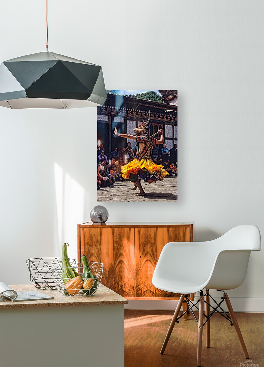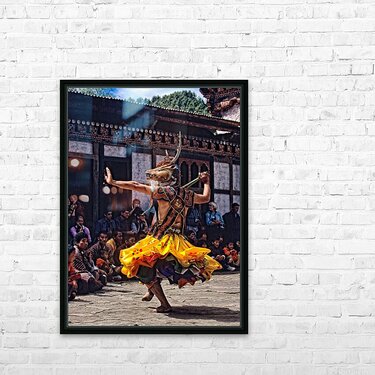 Bhutanese masked deer dancer performs for an attentive audience. Picture Frame Printing