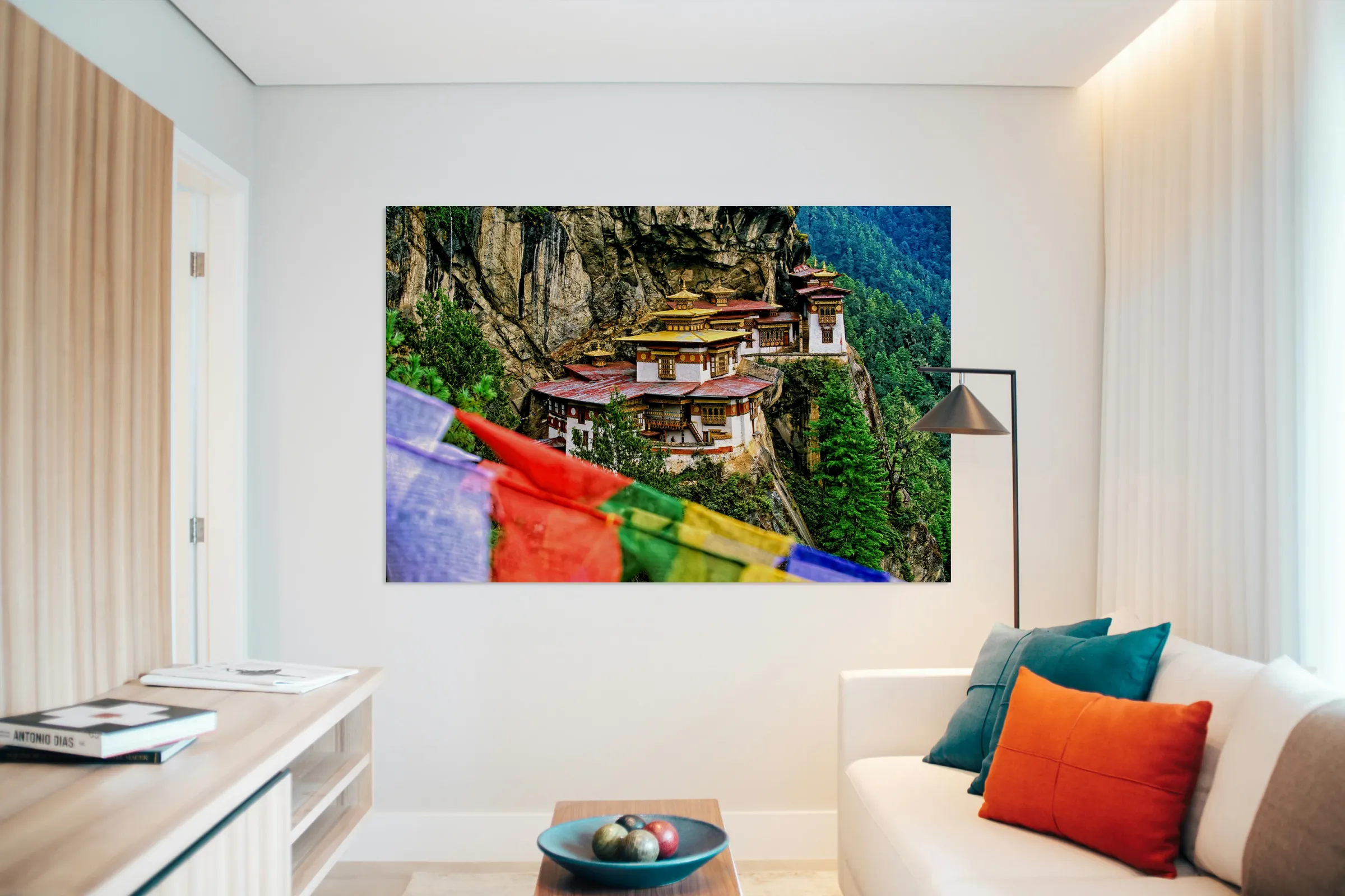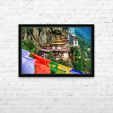 Get this artwork "Bhutans Tigers Nest Monastery cliffside architecture prayer " in a framed print.