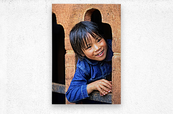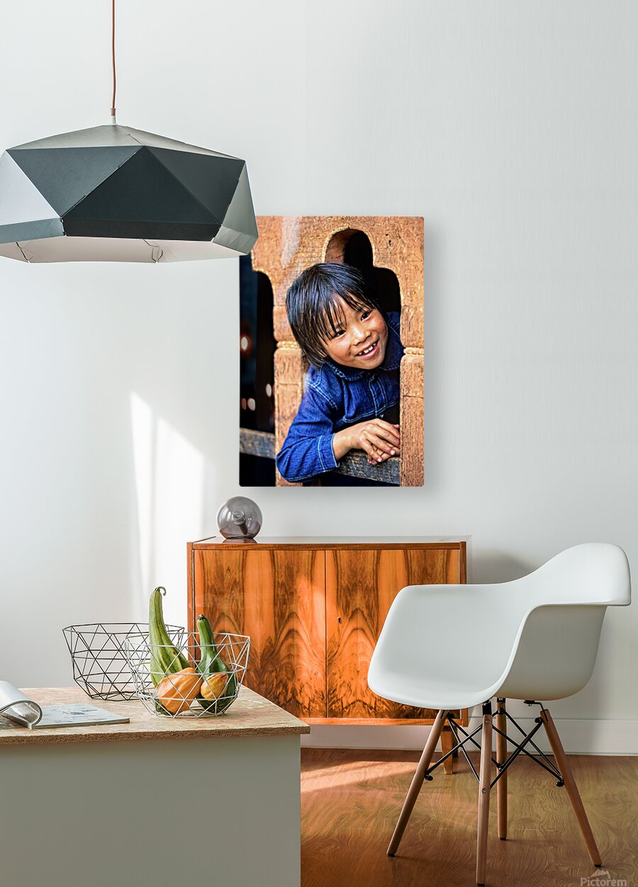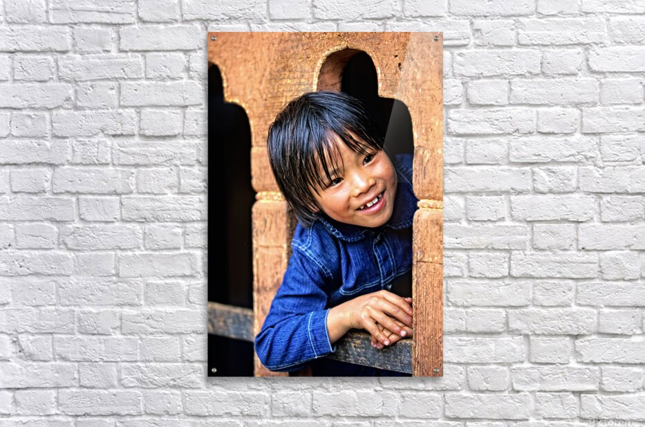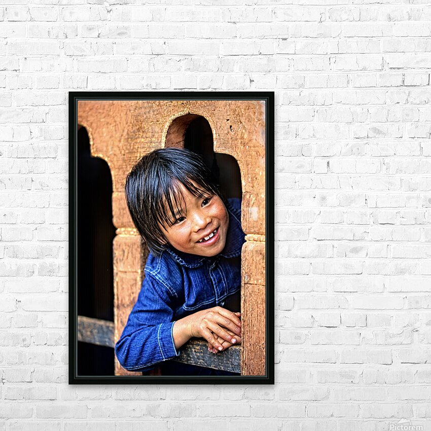 Smiling child peeking from a wooden window. Picture Frame Printing