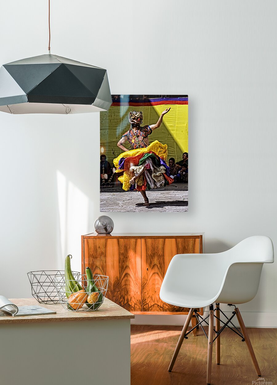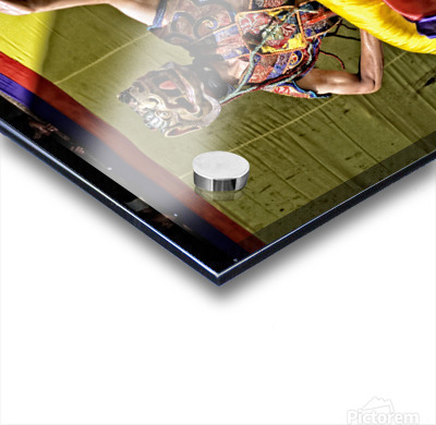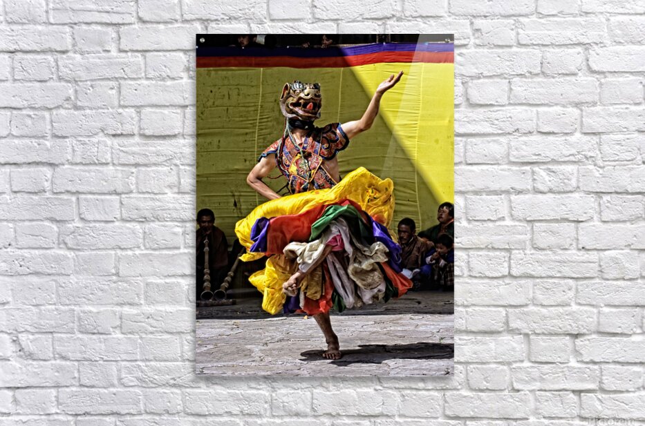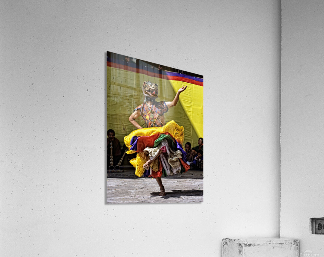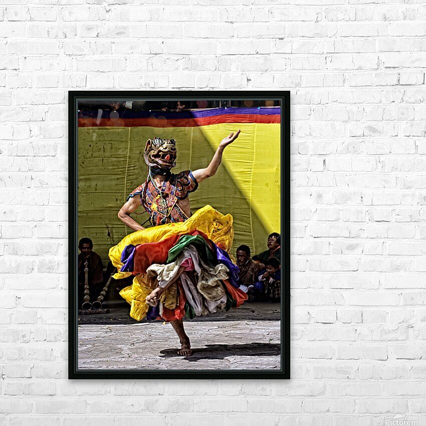 Vibrant masked dancer performs traditional dance. Picture Frame Printing