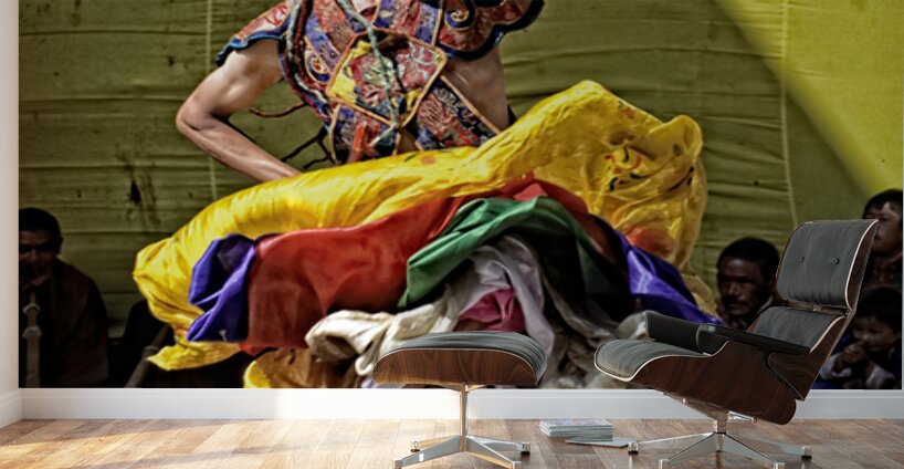 ABOUT THIS ARTWORK: VIBRANT MASKED DANCER PERFORMS TRADITIONAL DANCE.