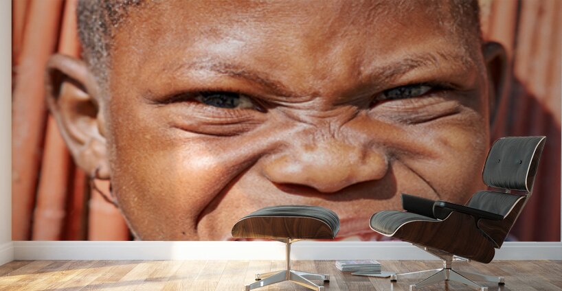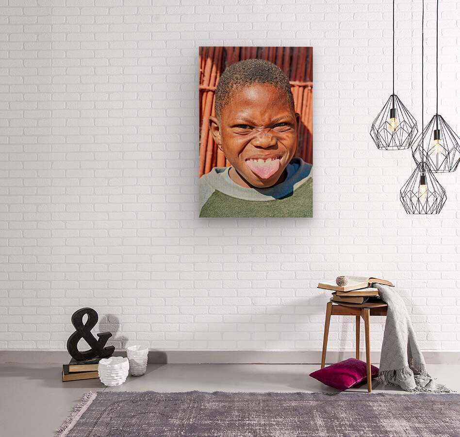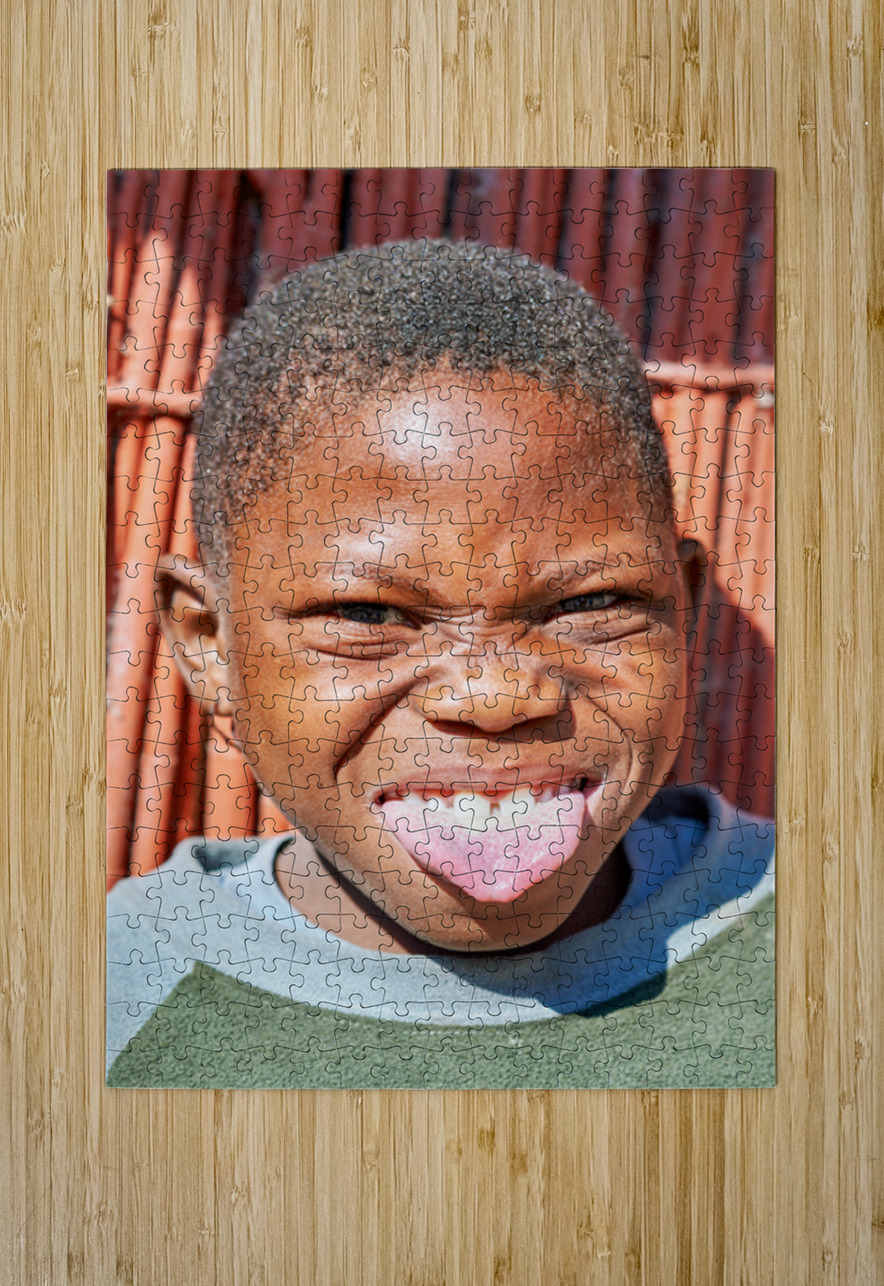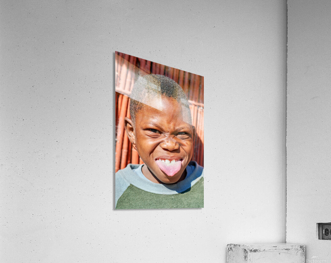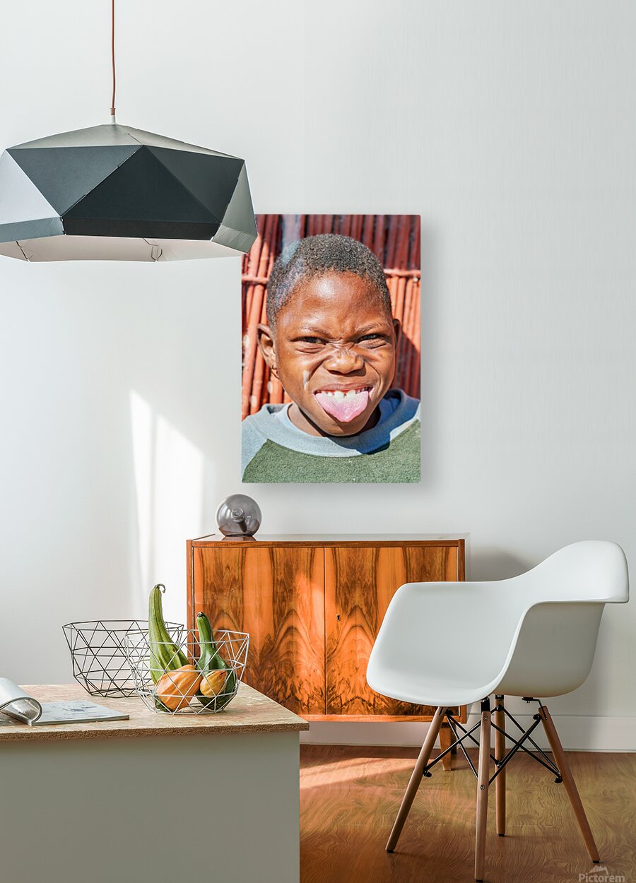 "Joyful child shows playful expression in Kavango Region Namibia" in a framed print.