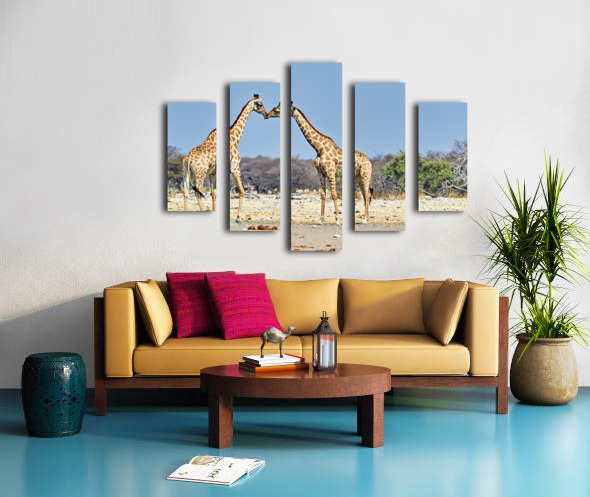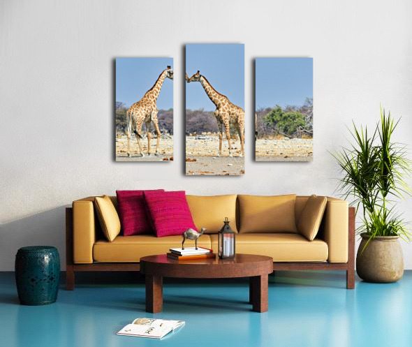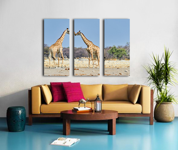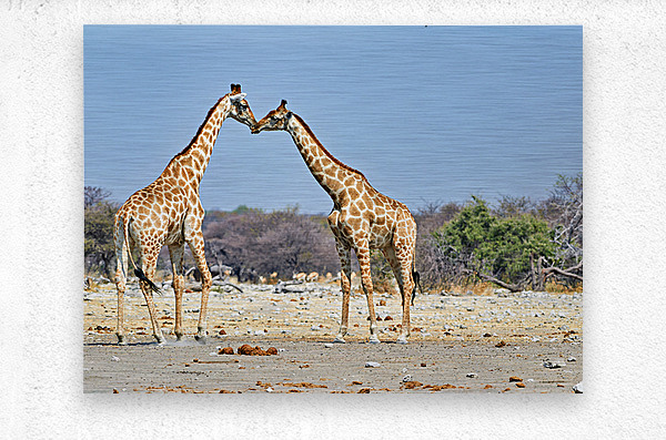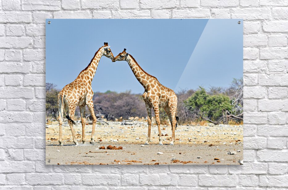 ABOUT THIS ARTWORK: GIRAFFES CUDDLING IN ETOSHA NATIONAL PARK IN NAMIBIA