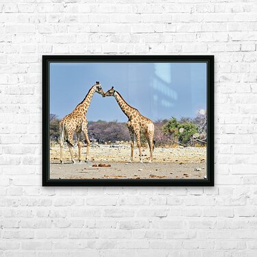 Get this artwork "Giraffes cuddling in Etosha National Park in Namibia" in a framed print.