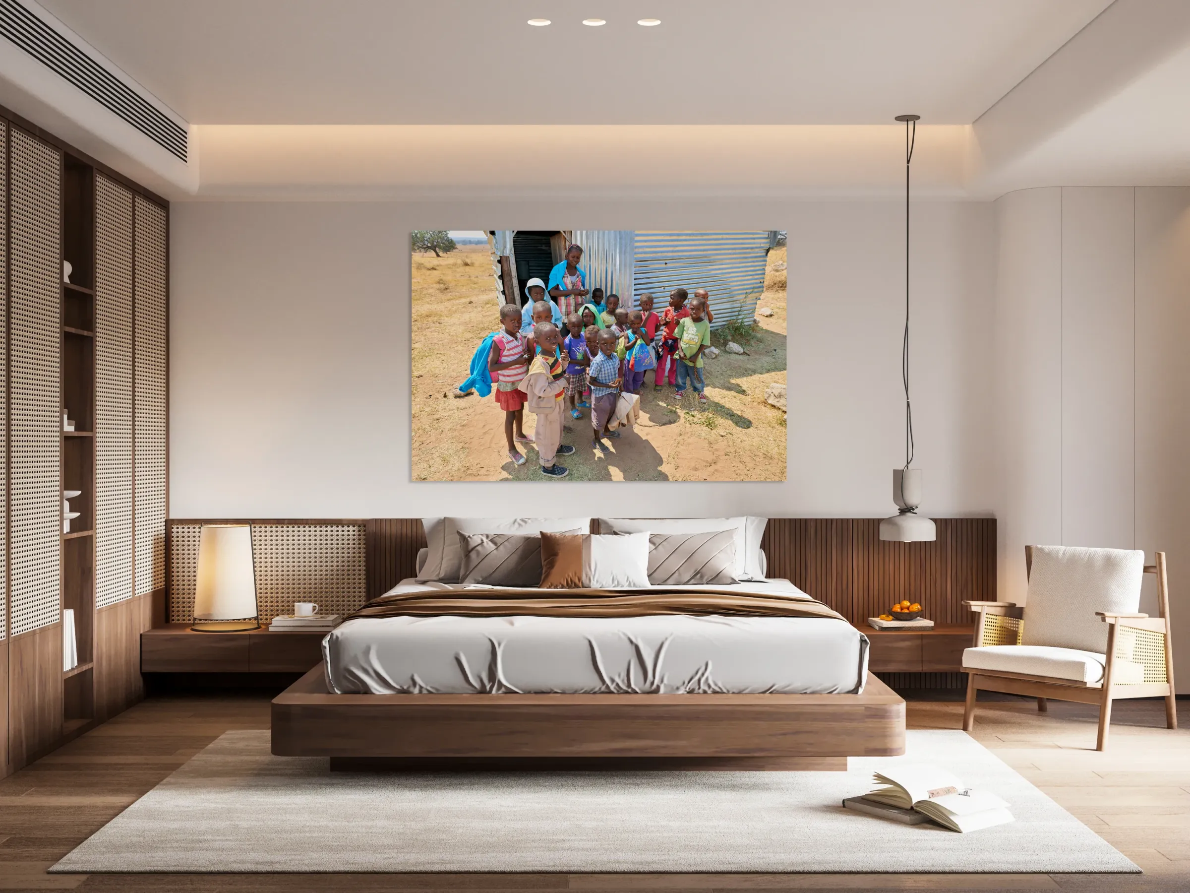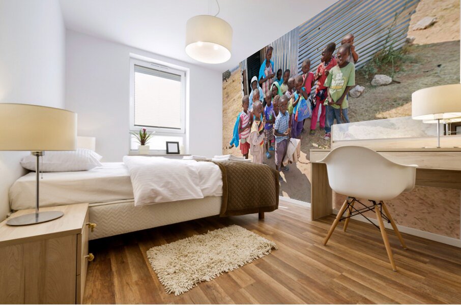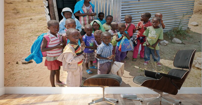ABOUT THIS ARTWORK: STUDENTS GATHER OUTSIDE A SCHOOL IN KAVANGO REGION NAMIBIA