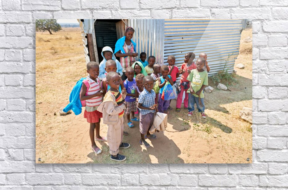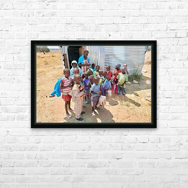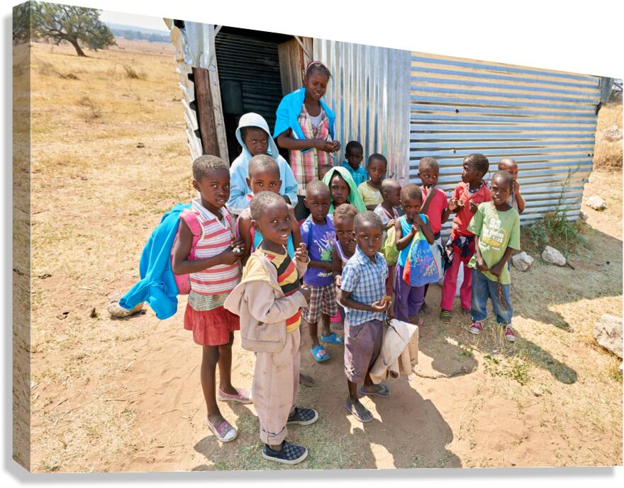 Get this artwork "Students gather outside a school in Kavango Region Namibia" in a framed print.