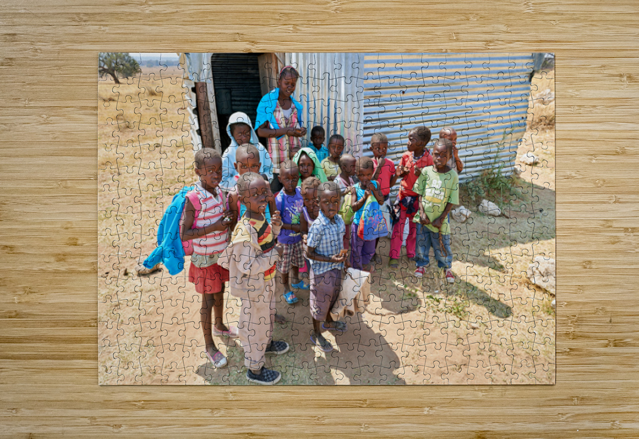 Students gather outside a school in Kavango Region Namibia Marco Brivio Puzzle printing