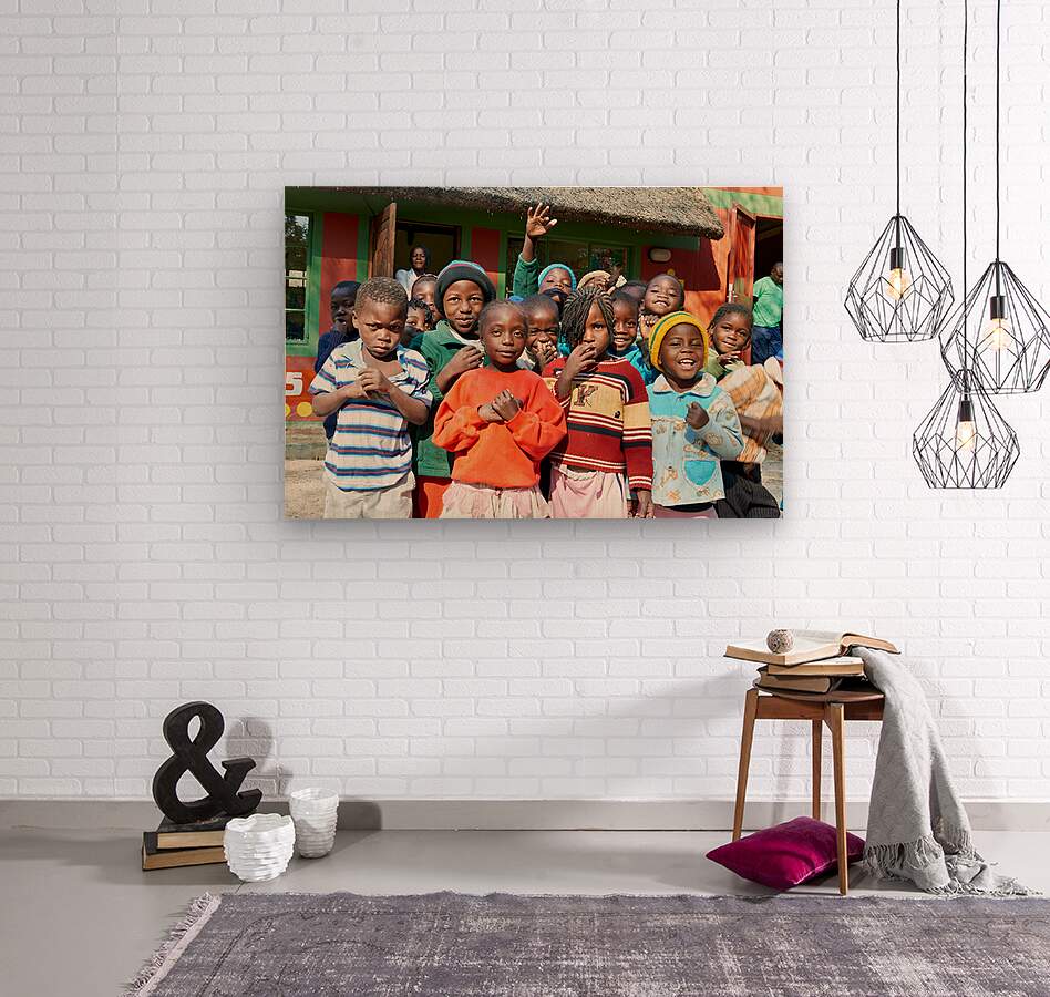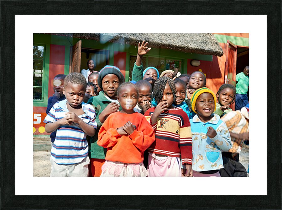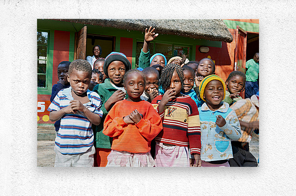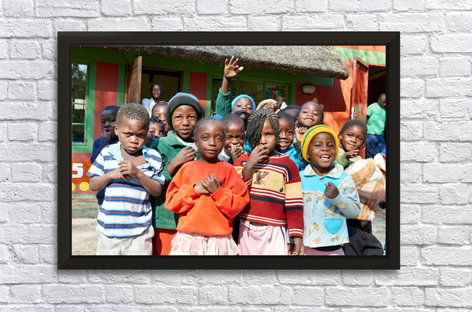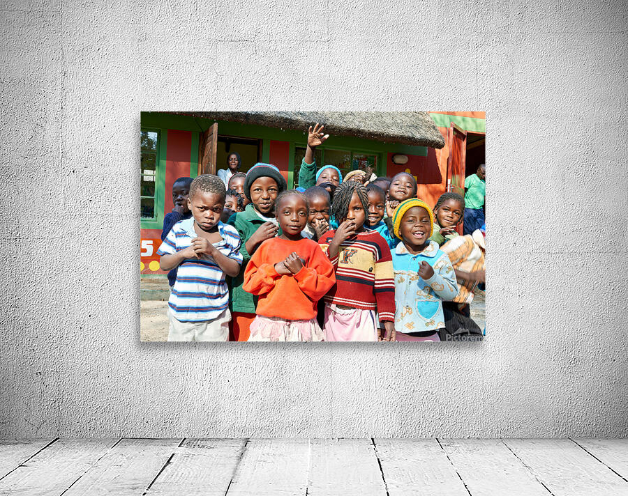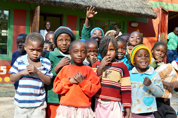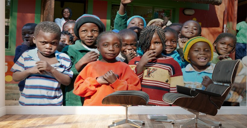 Children gather in a classroom of a school in Rundu Kavango Region. They smile and interact creating a lively atmosphere.