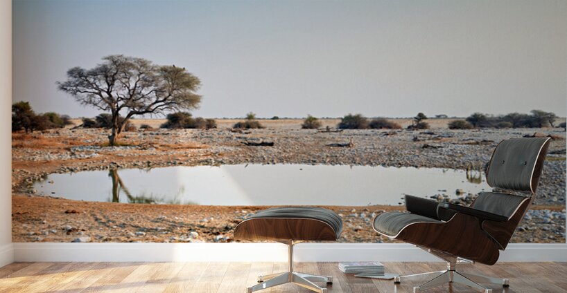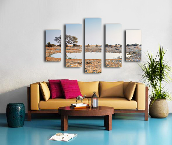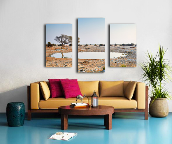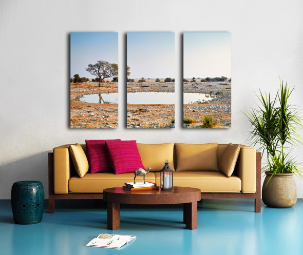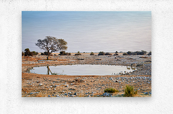 ABOUT THIS ARTWORK: ZEBRAS DRINK WATER AT A WATERHOLE IN ETOSHA NATIONAL PARK NAMIBI