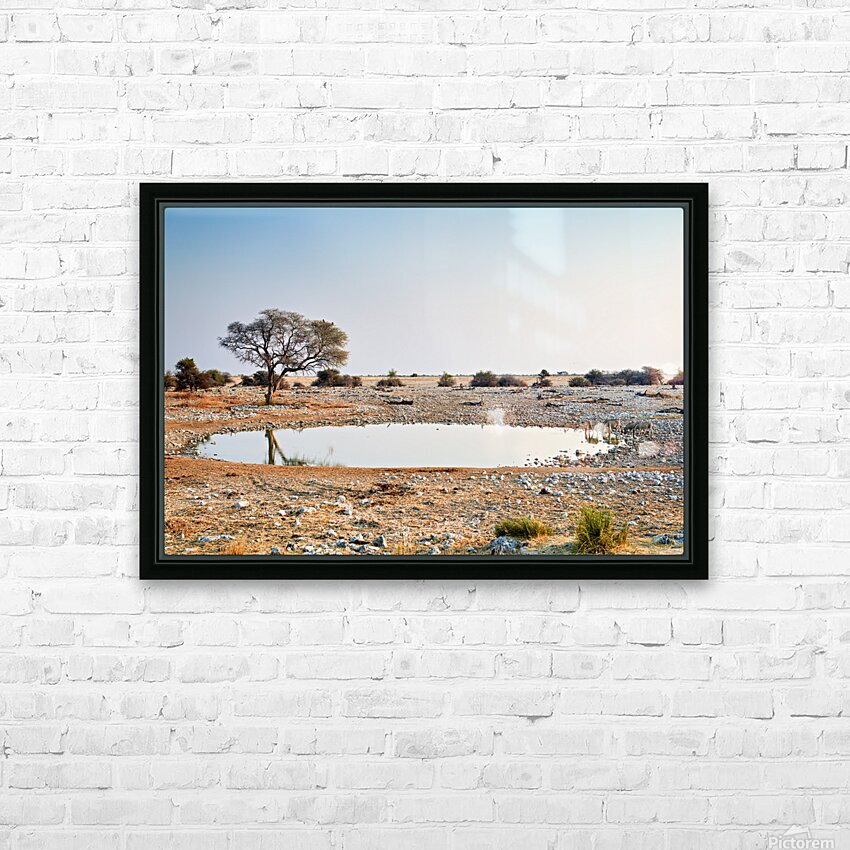 Zebras drink water at a waterhole in Etosha National Park Namibi Picture Frame Printing
