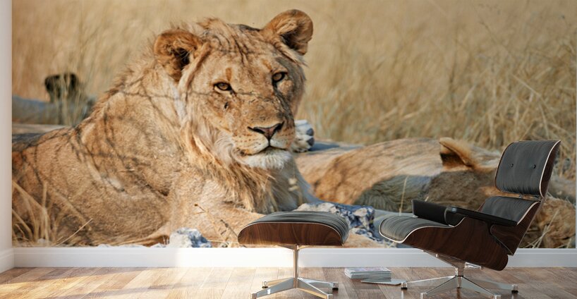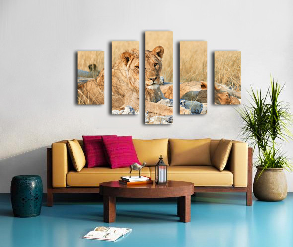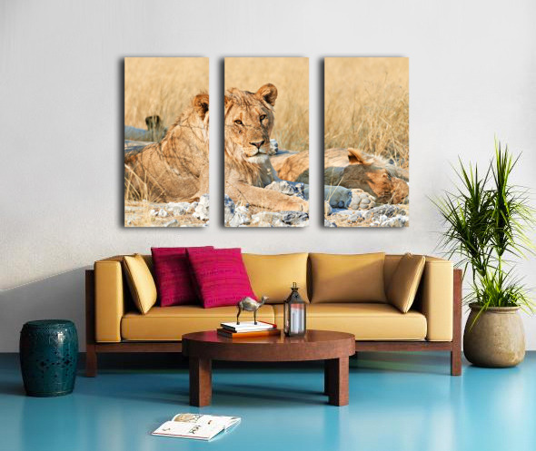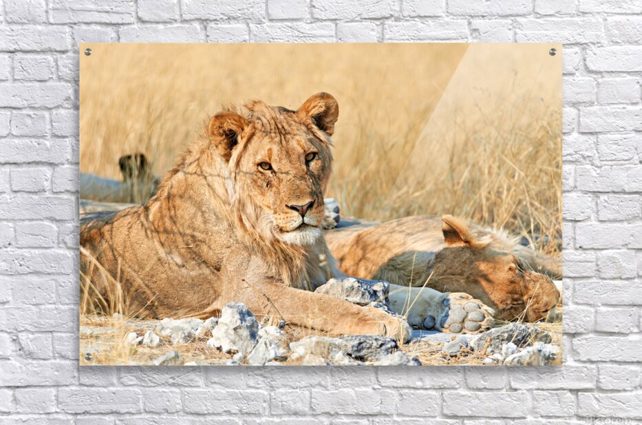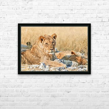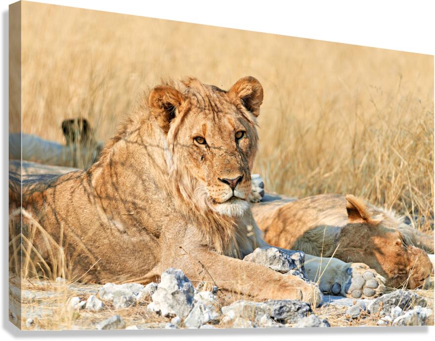 ABOUT THIS ARTWORK: LION RESTING IN ETOSHA NATIONAL PARK NAMIBIA DURING DAYLIGHT HO
