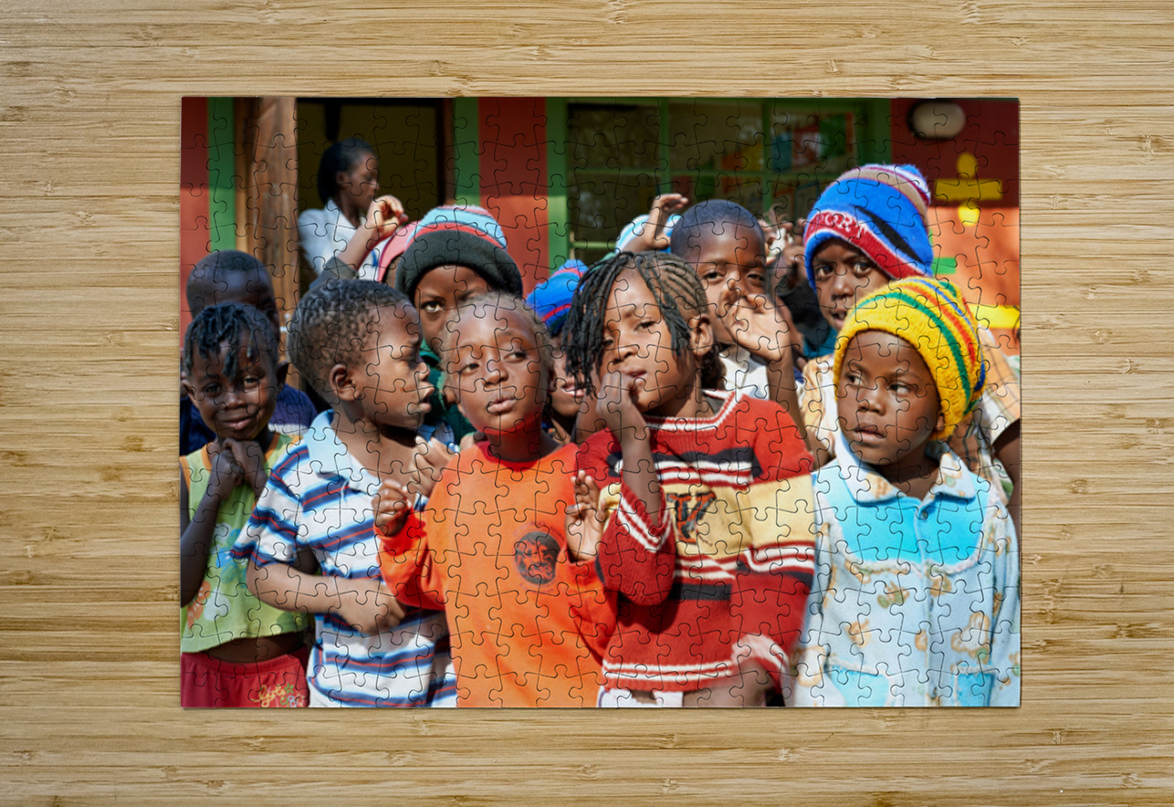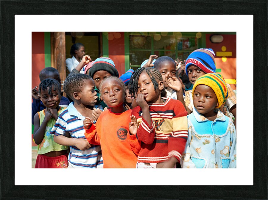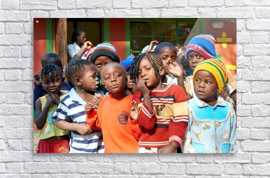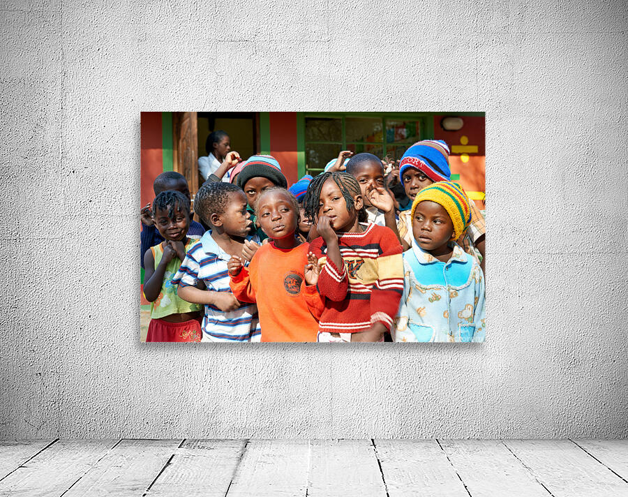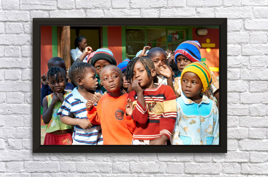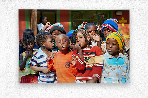 Young children are gathered outside a school in Rundu Kavango Region engaged in an activity with smiles and expressions of joy.