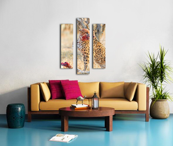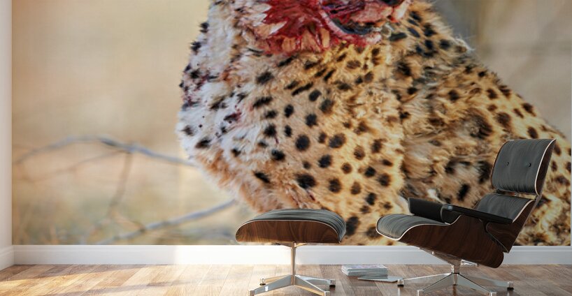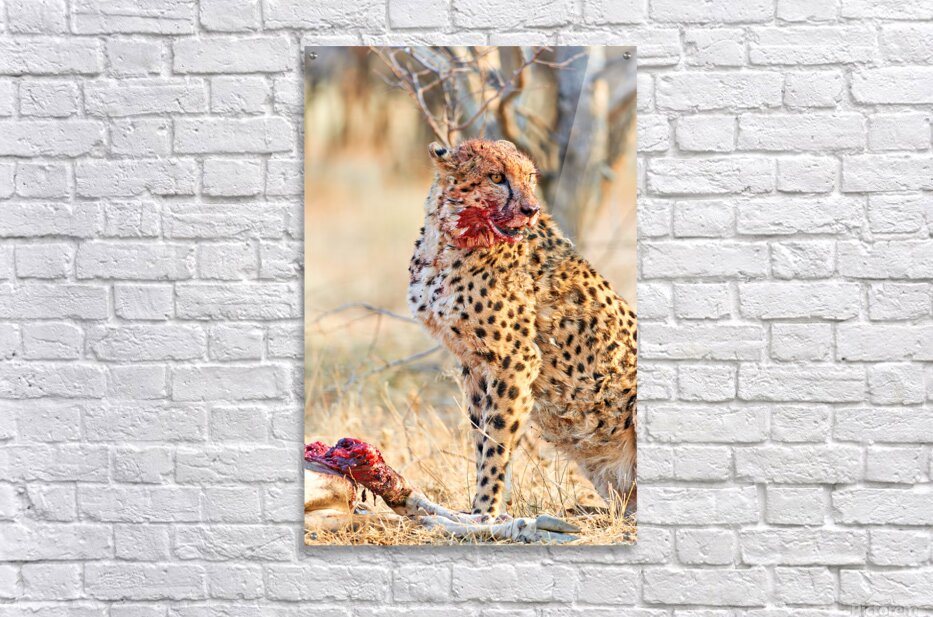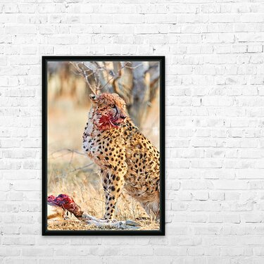 ABOUT THIS ARTWORK: CHEETAH EATING AFTER A HUNT IN OKONJIMA RESERVE NAMIBIA