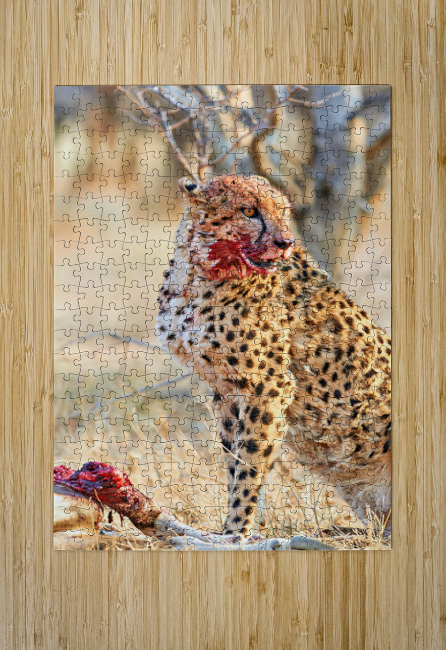 Cheetah eating after a hunt in Okonjima Reserve Namibia Marco Brivio Puzzle printing