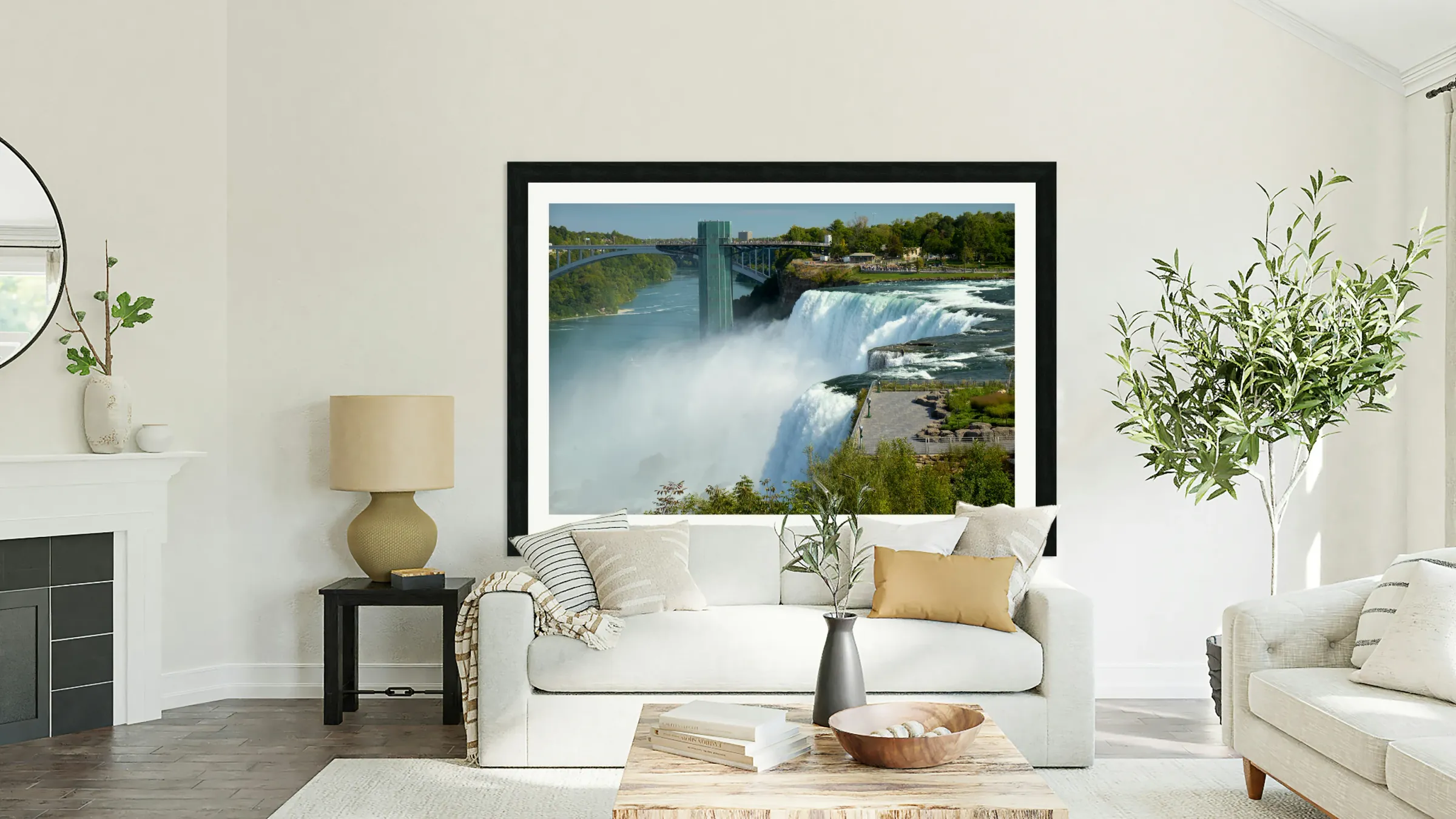 Niagara Falls bridge and observation deck on a sunny day. Frame print